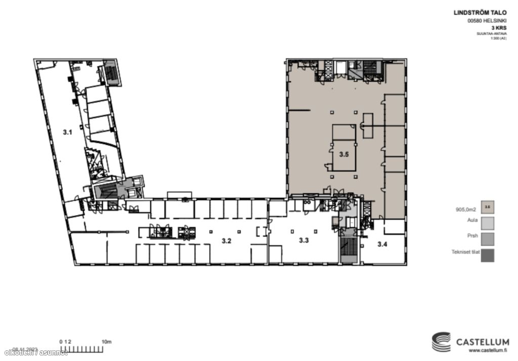 Vuokrataan industrial-henkisestä Lindström Talosta kolmannen kerroksen avara monitilatoimisto. Nykyaikainen business park sijaitsee erinomaisella paikalla Kalasatamassa. Kalasataman alue on voimakkaasti lähivuosina kehittyvä alue. Kalasataman rakentumisen myötä kaupungin sisäinen itä-länsi tasapaino muuttuu, ja Ruoholahti saa väistämättä haastajansa. Alueen erinomaiset tie- ja julkiset liikenneyhteydet varmistavat helpon saavutettavuuden ja vaivattomat työmatkat. Pysäköinti saatavuuden mukaan joko pysäköintihallissa, sisäpihalla tai alueen julkisilla pysäköintipaikoilla Business Parkin asiakkaiden liiketoimintaa ja henkilöstöä palvelevat toiminnot, sisältäen muun muassa: - Viihtyisän lounasravintola Carl Augustin - Aulapalvelut oheistoimintoineen - Korkeatasoiset kokous- ja neuvottelutilat varusteineen - Autonpesun - Hierontapalvelun - Klubiauton (talon sisäisen autonvuokrauksen) - Kuntosalin yhteistyössä naapuritalon kanssa. Metroasemalle on noin 200 metriä, josta pääsee metrolla Helsingin keskustaan noin kuudessa minuutissa. Raitiovaunu- ja linja-autopysäkeille on noin 150-200 metriä, linjasta riippuen. Itä- ja Lahdenväylät n. 1 minuutin ajomatkan päässä, ja Helsinki-Vantaa lentokentälle noin 25 minuutin ajomatka Kiinteistö on vuonna 2003 täysin remontoitu ja modernisoitu toimistotalo, jossa jokainen tila on varustettu jäähdytyksellä ja nykyaikaisella kuitu- ja CAT 6 datakaapeloinnilla.