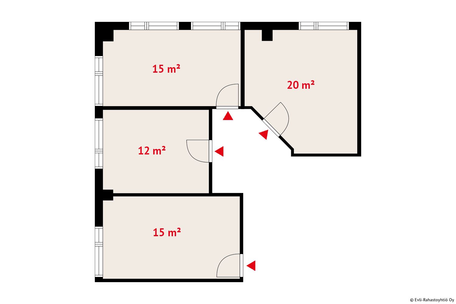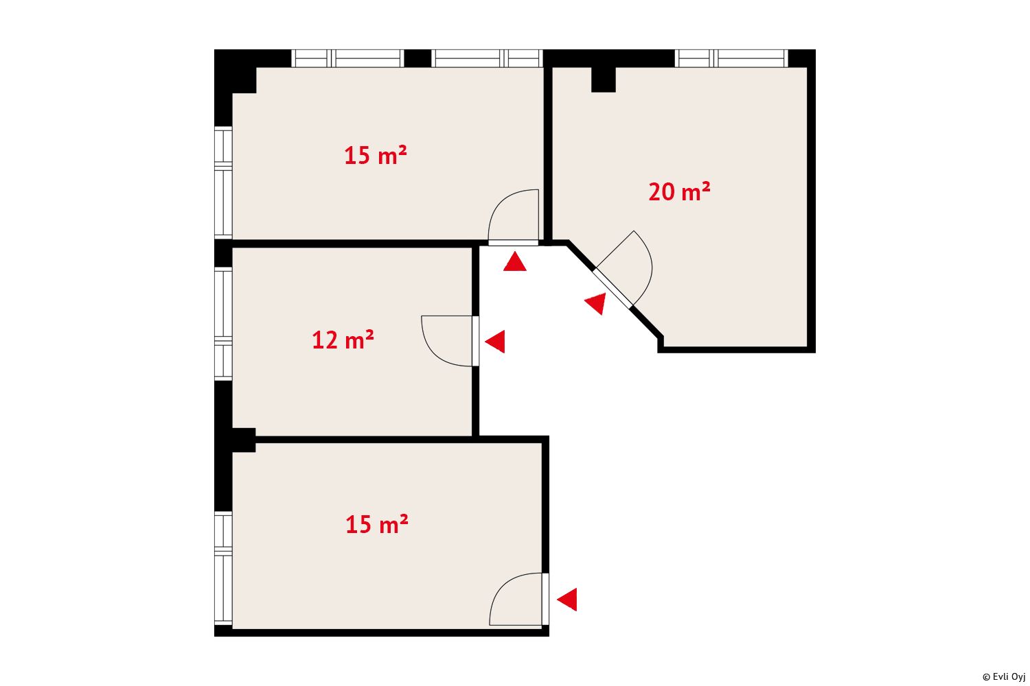 Jaettavissa / laajennettavissa 15m² / 12 m²