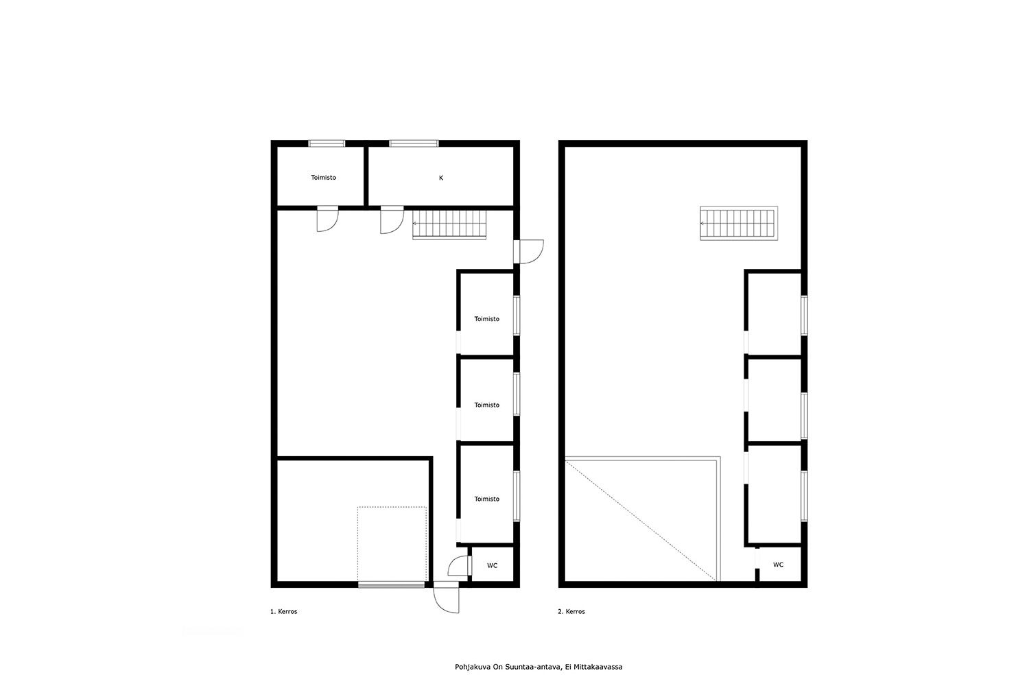 Kunto, varusteet ja palvelut: Toimistohuoneita, nosto-ovi käyntiovella, lattiakaivo, wc ja suihku