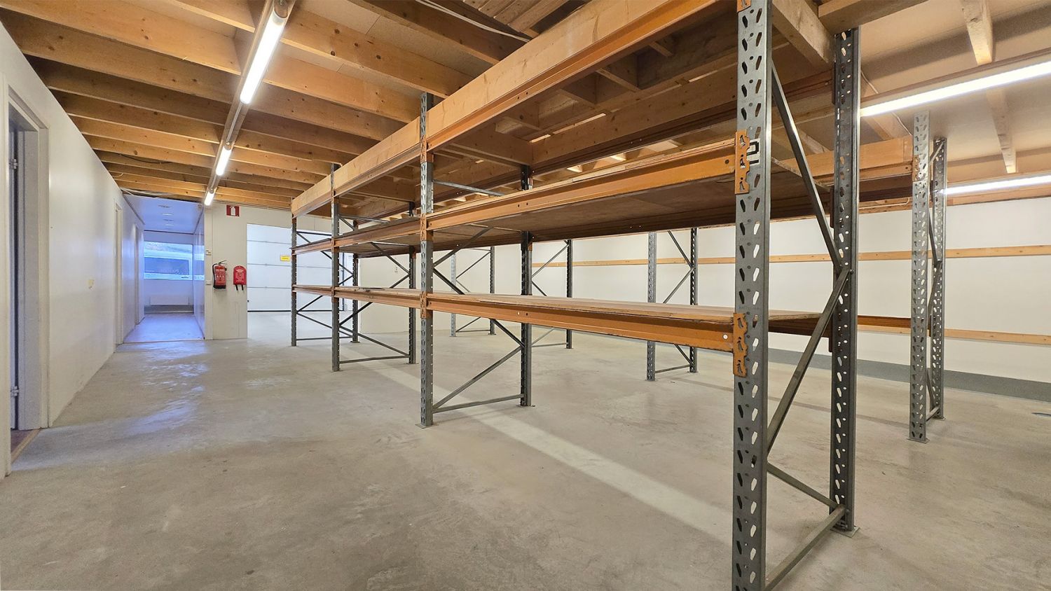 Halli on pinta-alaltaan noin 210 m² ja sen varusteluun kuuluu iso nosto-ovi, lattiakaivo ja kaksi erillistä käyntiovea. Korkeaa varastotilaa nyt noin 45 m² ja matalaa hallitilaa runsaasti kahdessa tasossa. Useita toimistohuoneita, keittiö ja wc-tila suihkulla.
