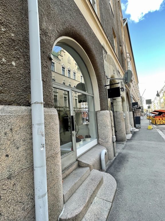 Katutason liiketilaa Helsingin ydinkeskustassa.