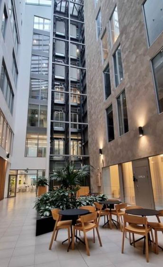 Työmatkapyöräilijöille on tarjolla pyöräparkit sekä siistit pukeutumis- ja suihkutilat. Autolla saapuville löytyy runsaasti pysäköintitilaa sekä sähköautojen latauspisteitä.
