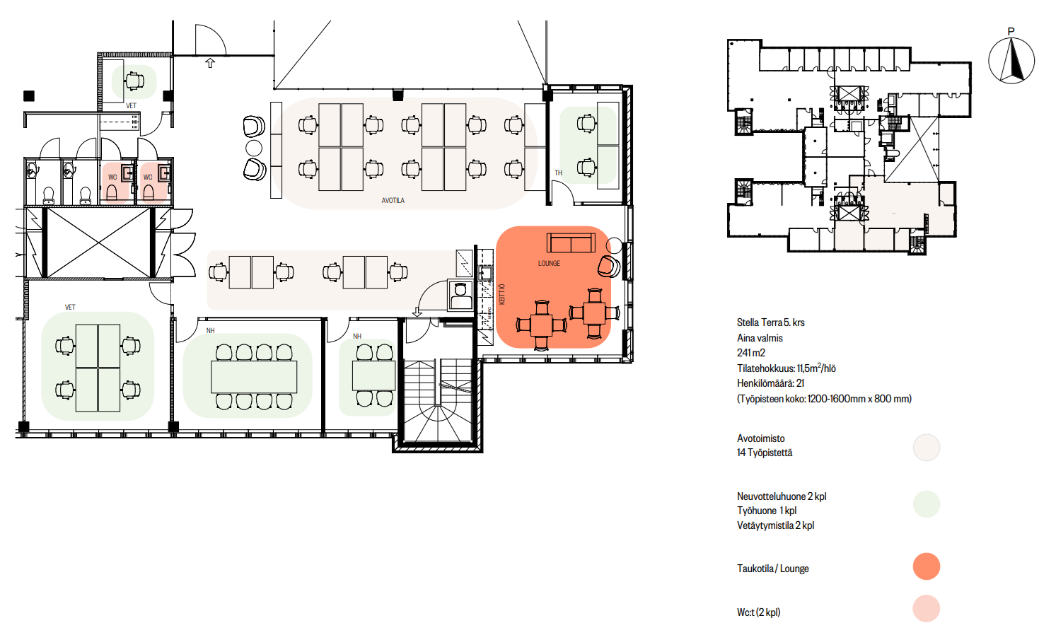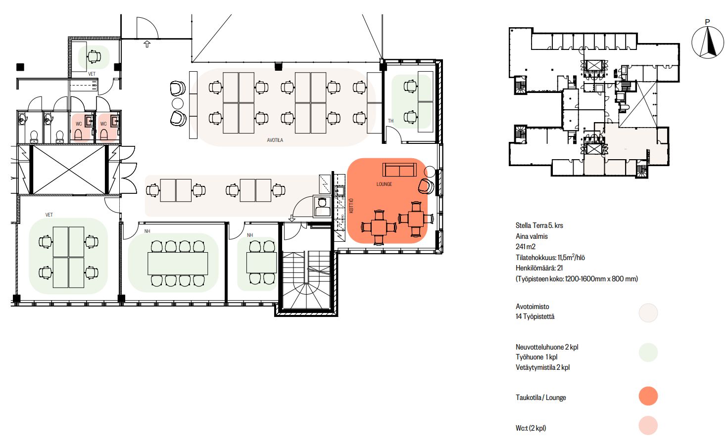 Tila on upea ja täysin remontoitu Aina Valmis -konseptin mukaisesti laadukkailla ja vastuullisilla materiaaleilla sekä toimivalla tilaratkaisulla vastaamaan nykytyöelämän vaatimuksia.