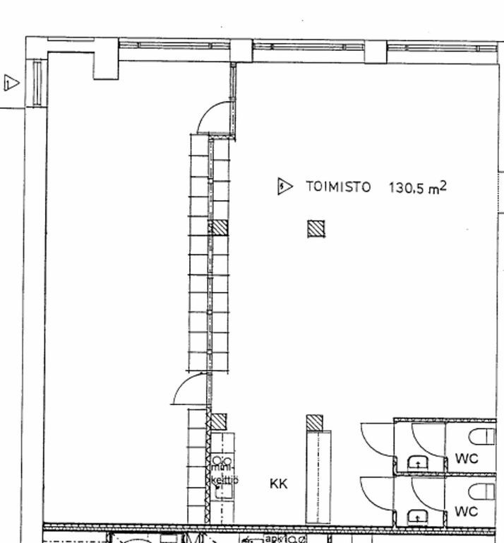 Tämä 130,5 m² liiketila sijaitsee asuintalon kivijalassa. Tilassa on keittiö ja kaksi wc:tä.