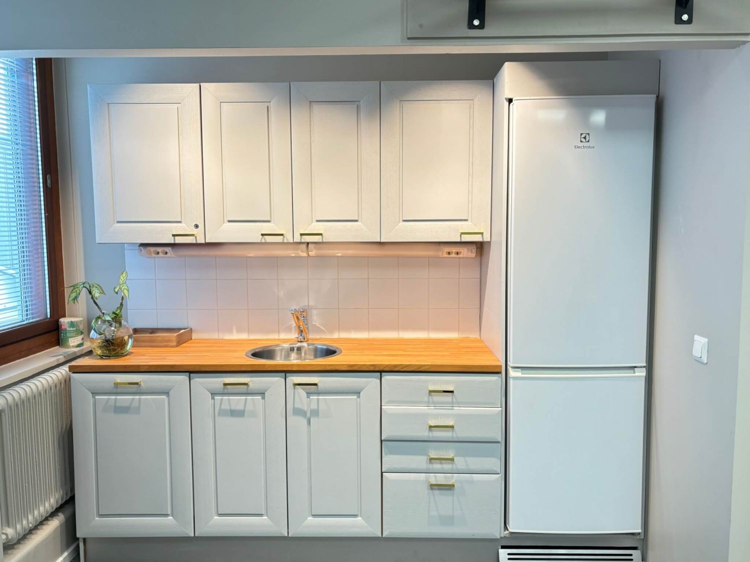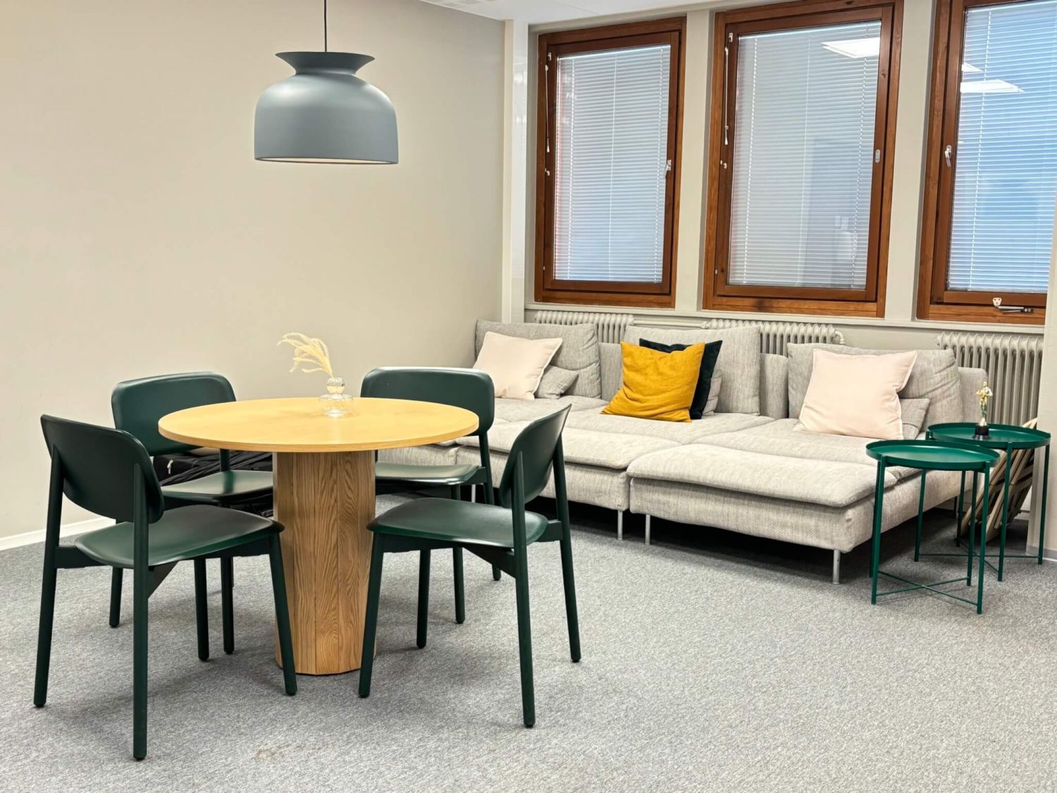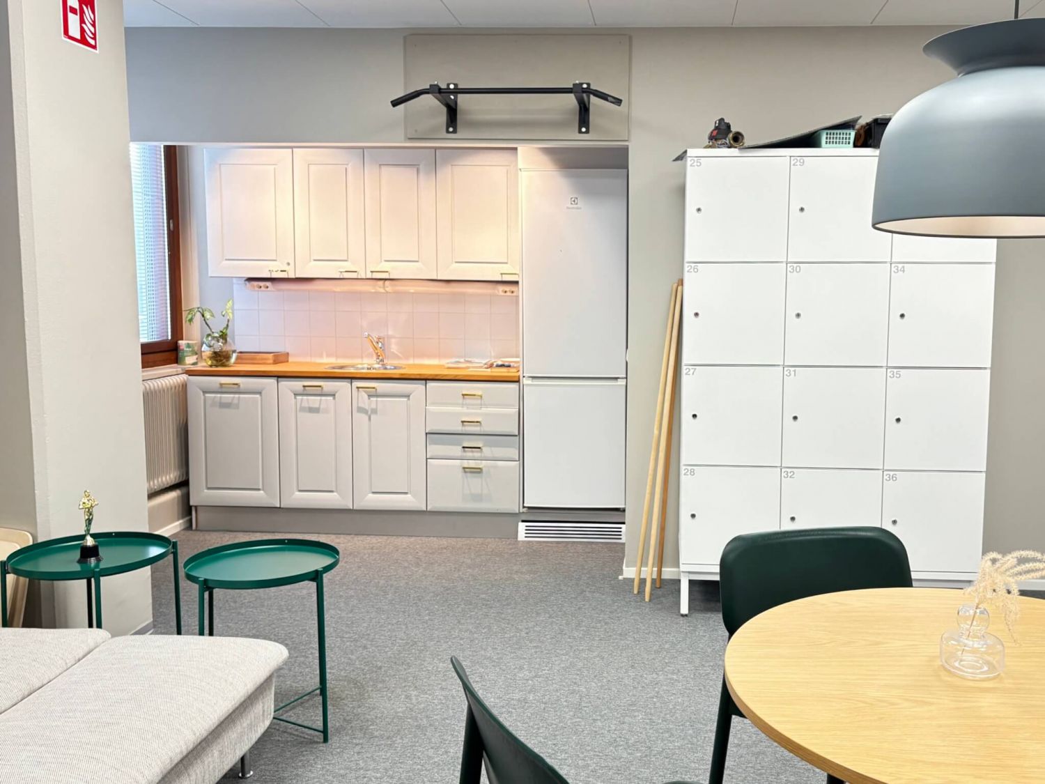 Kokonaisuudessa avotilan lisäksi reilun kokoinen neuvottelutila ja avokeittiö.