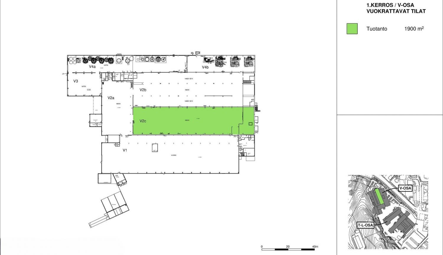 Tähän tilaan on mahdollista toteuttaa maatason nosto-ovet tai vuokrata laajempi tilakokonaisuus (V2a-c), joissa on valmiina maatason nosto-ovet. Tilan maksimikorkeus vaihtelee alueittain, noin 4,5-8 metriä. Ohessa havainnollistavia kuvia.