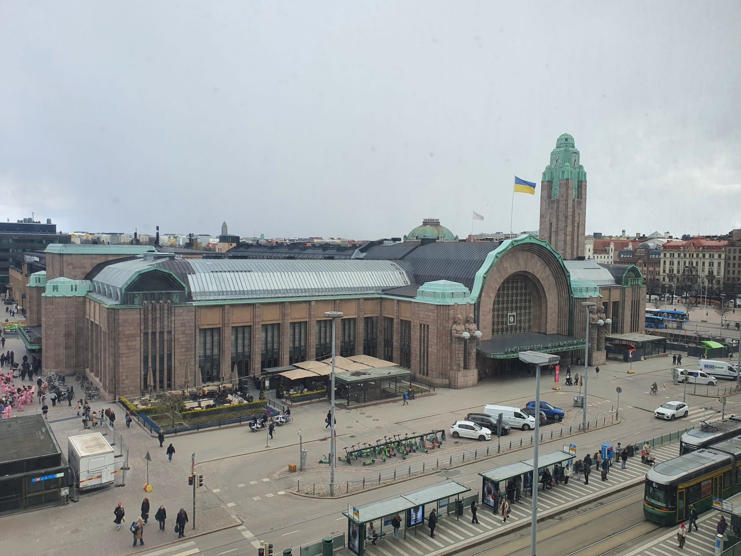 Upeat näkymät suoraan Helsingin päärautatieasemalle rakennuksen 6. kerroksesta.
