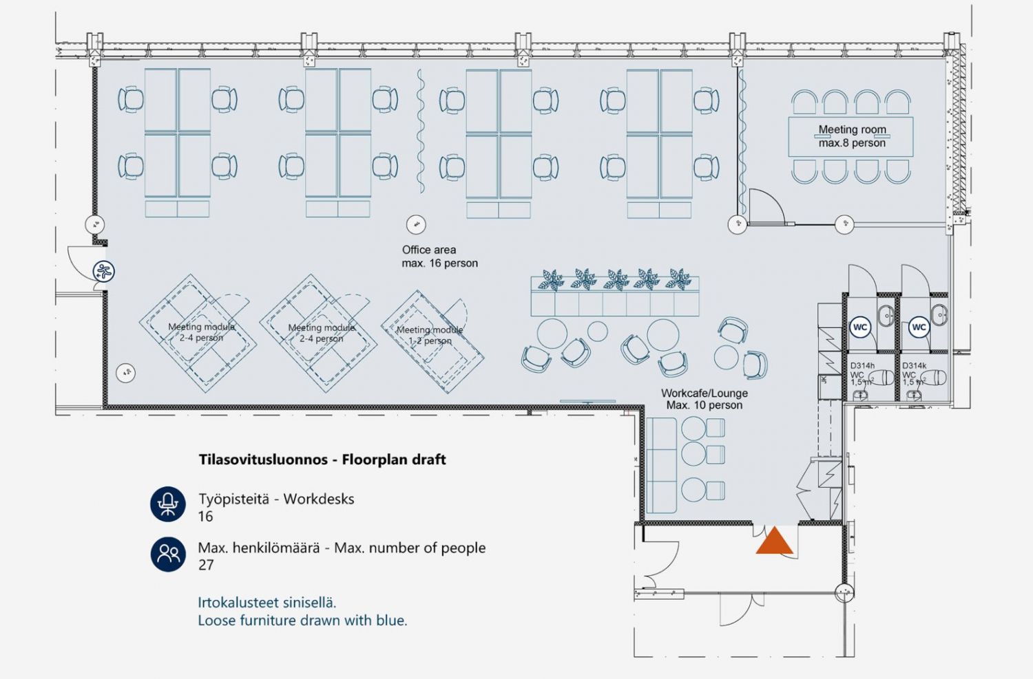 Vuokrataan Troolin D-rapussa sijaitseva, hiljattain remontoitu 210,5 m2 toimistotila tarjoaa valoisat ja tehokkaat puitteet 10–27 hengen tiimille. Tilassa on avotyöskentelyalue, 8 hengen neuvotteluhuone sekä keittiö ja loungetila sisäänkäynnin yhteydessä. Pohjoiseen kadulle avautuvat ikkunat tuovat tilaan luonnonvaloa ja rauhaa.