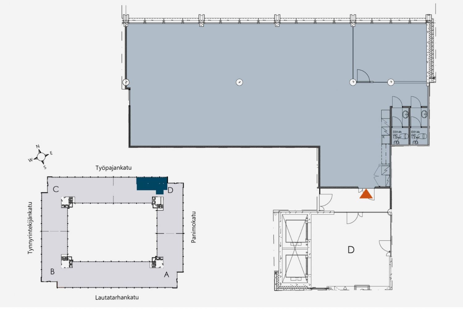 Toimitila sijaitsee loistavalla paikalla Kalasatamassa. Lyhyen kävelymatkan päästä löytyy mm. Kauppakeskus REDI, metroasema ja urbaani Teurastamon alue.