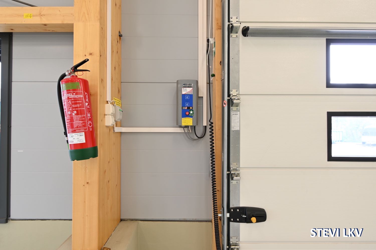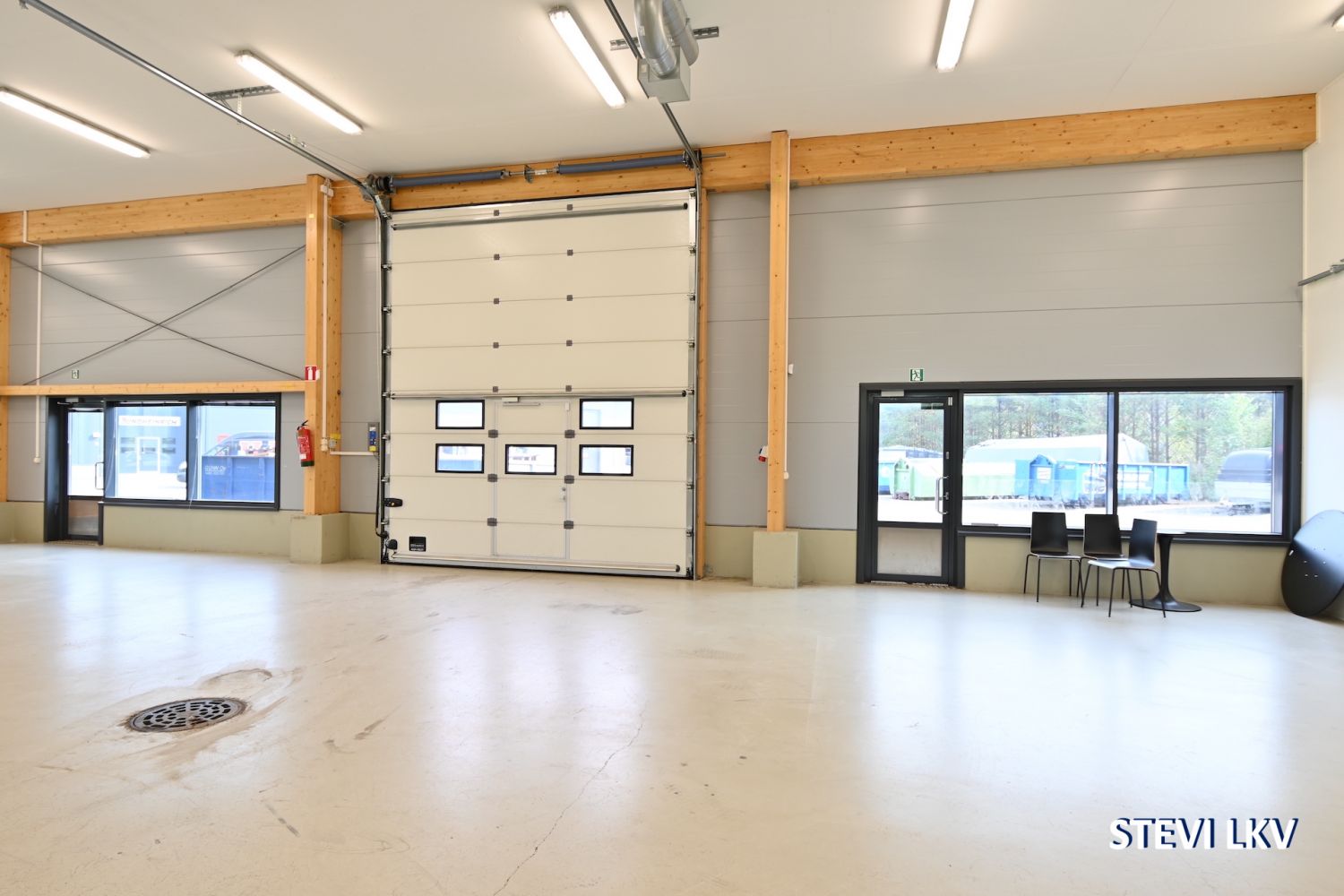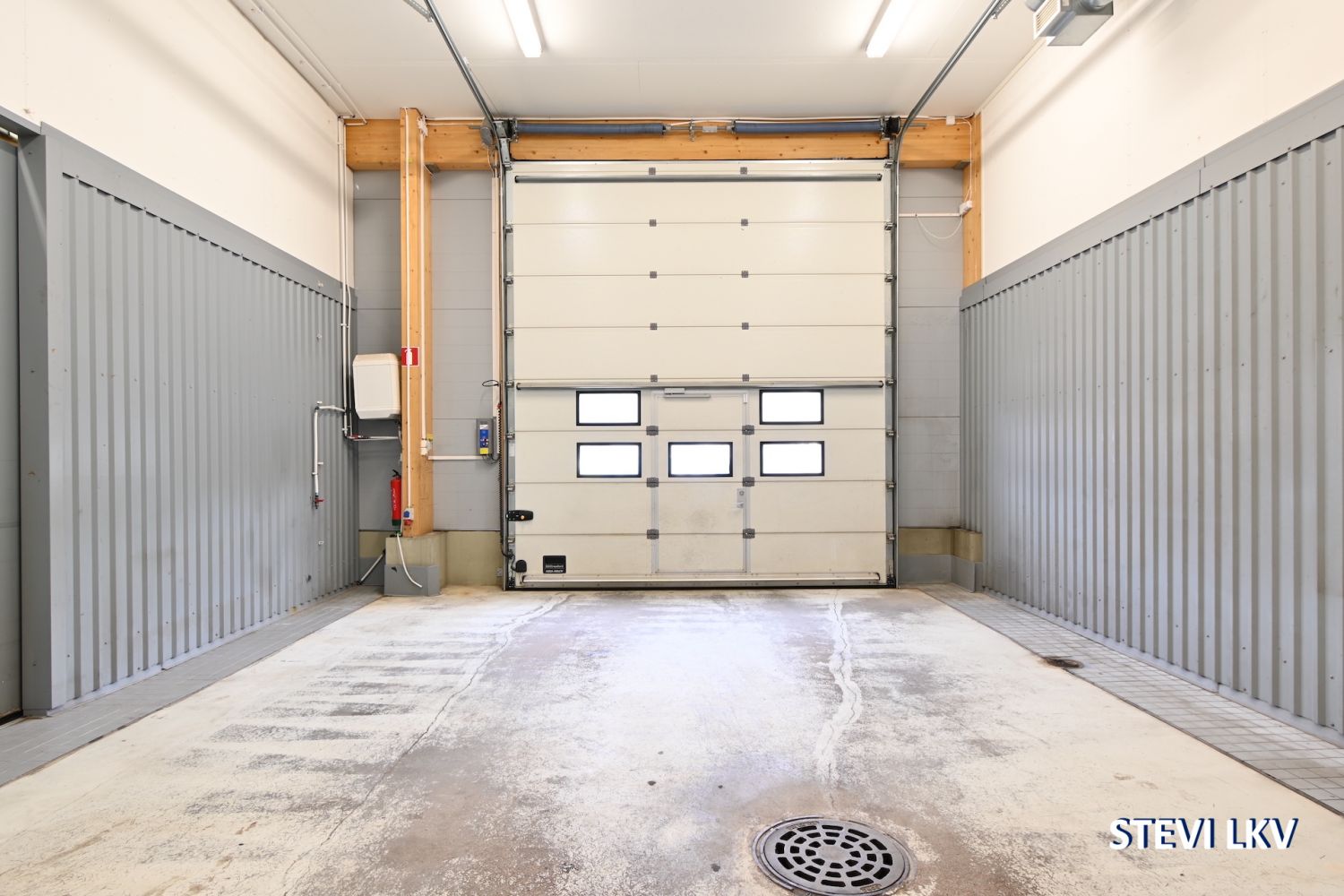 Tilaan on 3 isoa ja sähköistä nosto-ovea (4,0 x 4,5 metriä korkea).