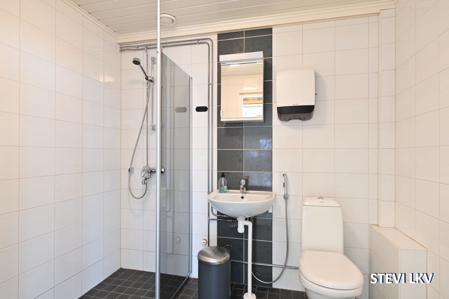 Korkeaa tilaa (vapaa korkeus 5 metriä), tilassa on taukotila ja lisäksi wc suihkulla.