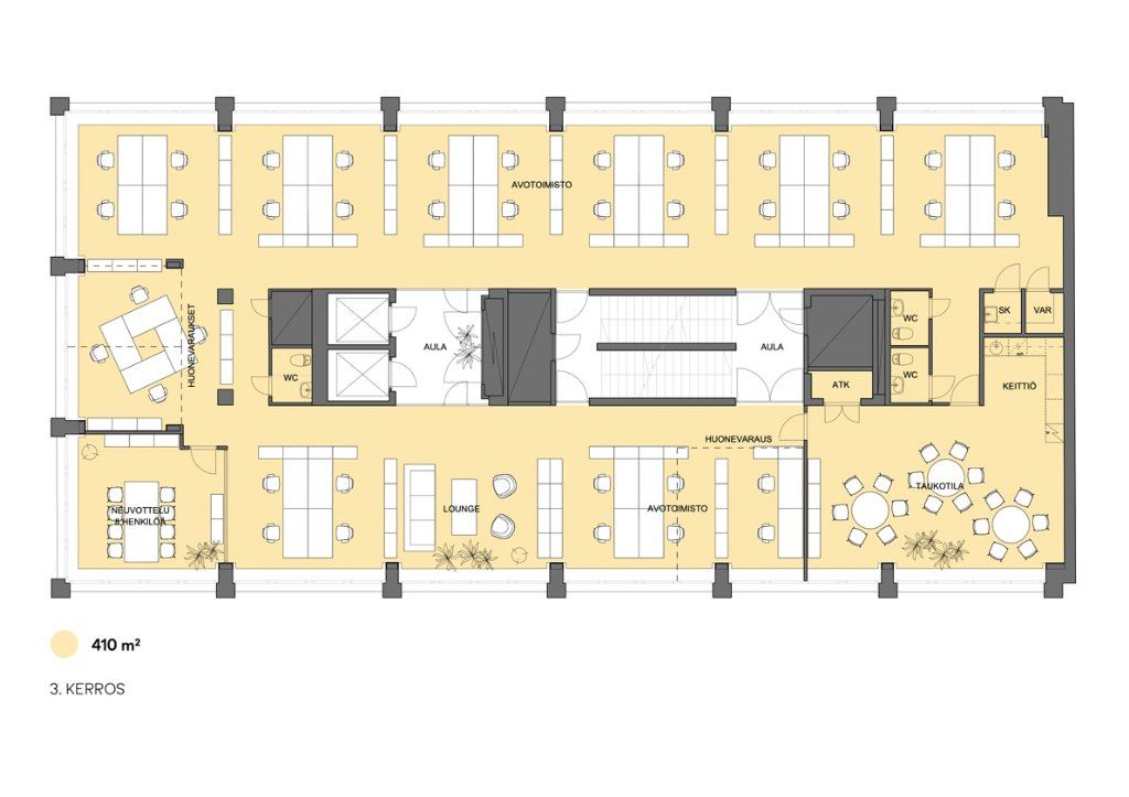 Vuokrataan 410m2 3. kerroksen toimistotila Kampista. Voitte suunnitella pohjaratkaisun sekä viimeistelyn teidän yrityksenne tarpeiden mukaisiksi. Tila on heti vapaa.