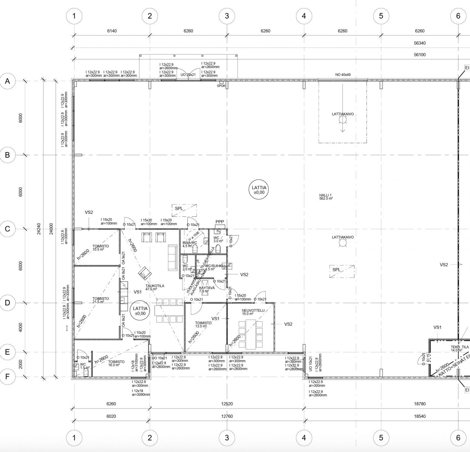Hallitilaa korkein nosto-ovin. Kaikkiaan lattiapinta-alaa noin 733m2 ja lisäksi pieni parvitila noin 33m2 jossa oma ilmalämpöpumppu.