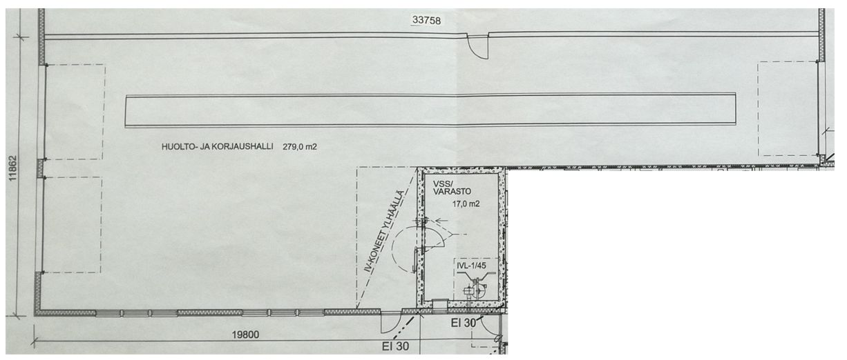 Läpiajettava, täyspitkän rekan huoltoon mitoitettu huoltomonttu. Hallin sisäpituus 26 m. Yhdessä päädyssä 2 kpl korkeaa nosto-ovea, toisessa päädyssä 1 korkea nosto-ovi.