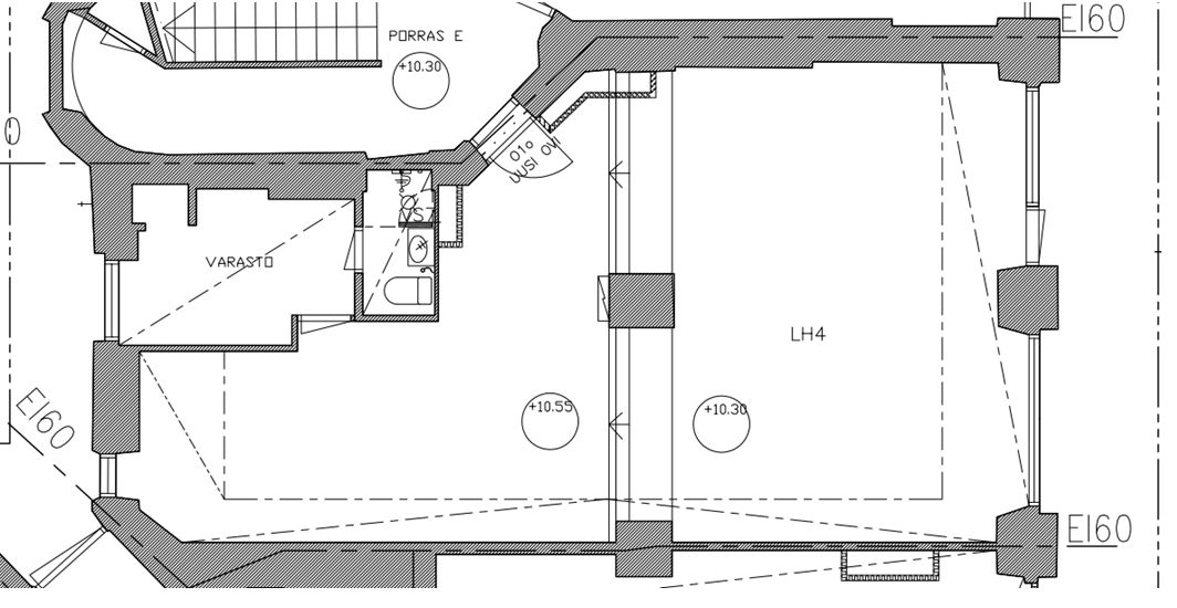 Tämä liiketila koostuu kahdesta kerroksesta, josta on suora pääsy vilkaalle kadulle. Katutasosta löytyy kaksi suurta ikkunaa ja kutsuva avotila. Alakerrasta löytyy yksi yhtenäinen huone, pieni keittiö ja wc-tilat. Tila ei sovellu kampaamo käyttöön.