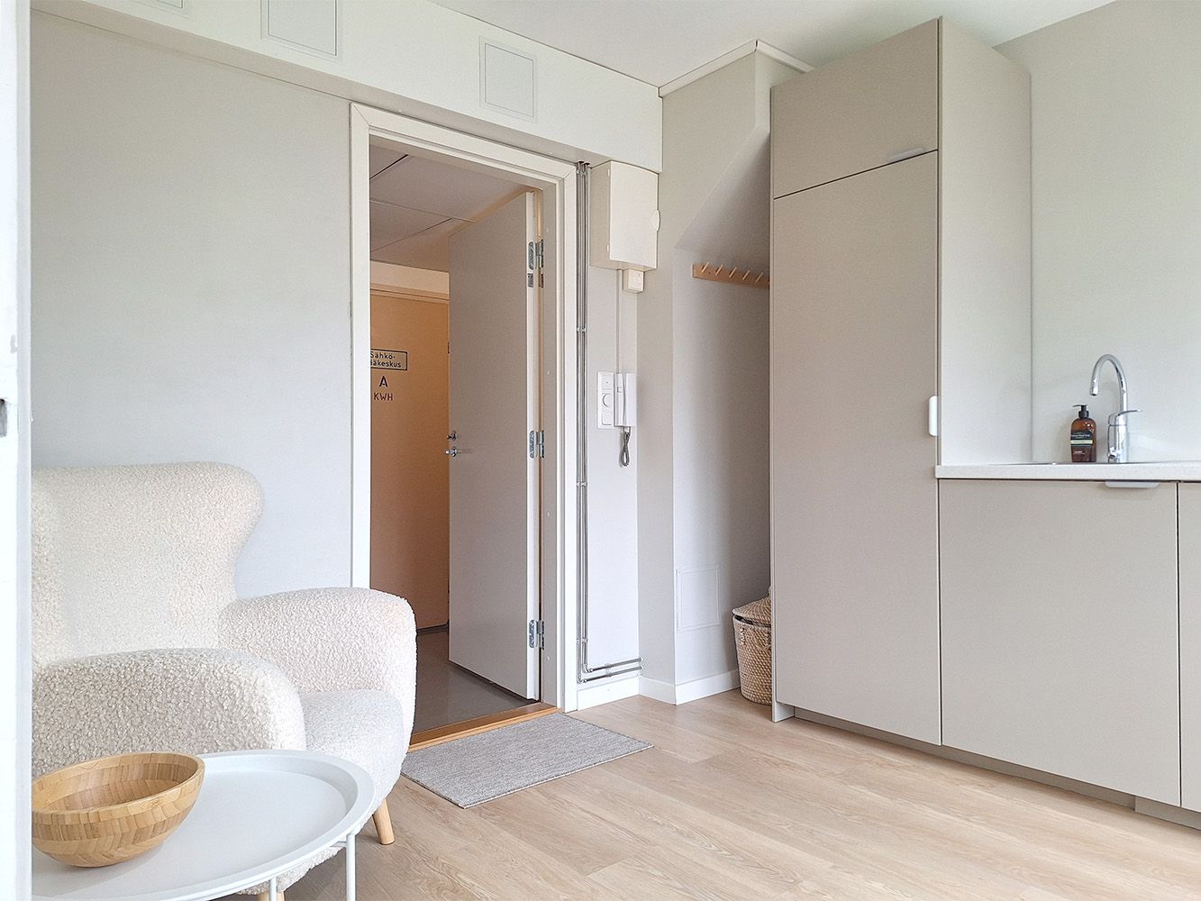 Huoneisto on pinta-alaltaan 28-neliöinen ja sisätilan korkeus on 2,4 metriä, muut mitat näkyvät pohjakuvassa.