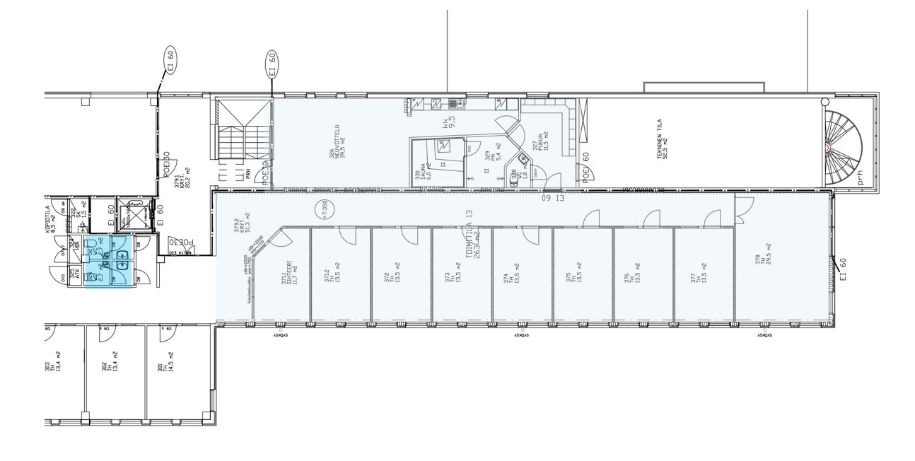 Talon 3. kerroksessa on vuokrattavana jäähdytettyä toimistotilaa. Tilassa on useita eri kokoisia huoneita, joista on mahdollisuus avata myös avotoimistoa tarvittaessa. Tilojen pintojen päivittämisestä on mahdollisuus neuvotella tarvittaessa.