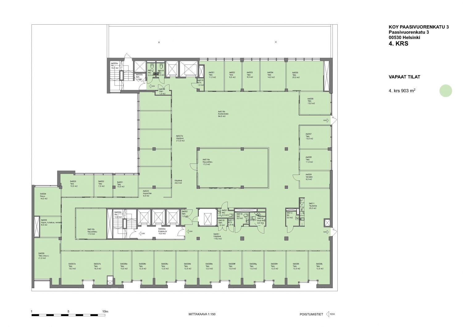 Vapaa neljännen kerroksen toimitila.
