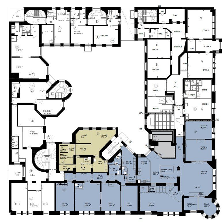 Vuokrattava tila koostuu useammasta huoneistosta: 20 m², 222 m², 47 m² sekä 183 m². Tilat soveltuvat esimerkiksi toimistokäyttöön, ja kokonaisuus mahdollistaa erilaisten käyttötarpeiden yhdistämisen saman katon alle. Käytössä on yhteinen ilmanvaihtokonehuone toimistojen ja ravintolan kanssa, ja vuokralainen vastaa omalta osaltaan IV-koneen sähkön ja lämmönkulutuksesta.