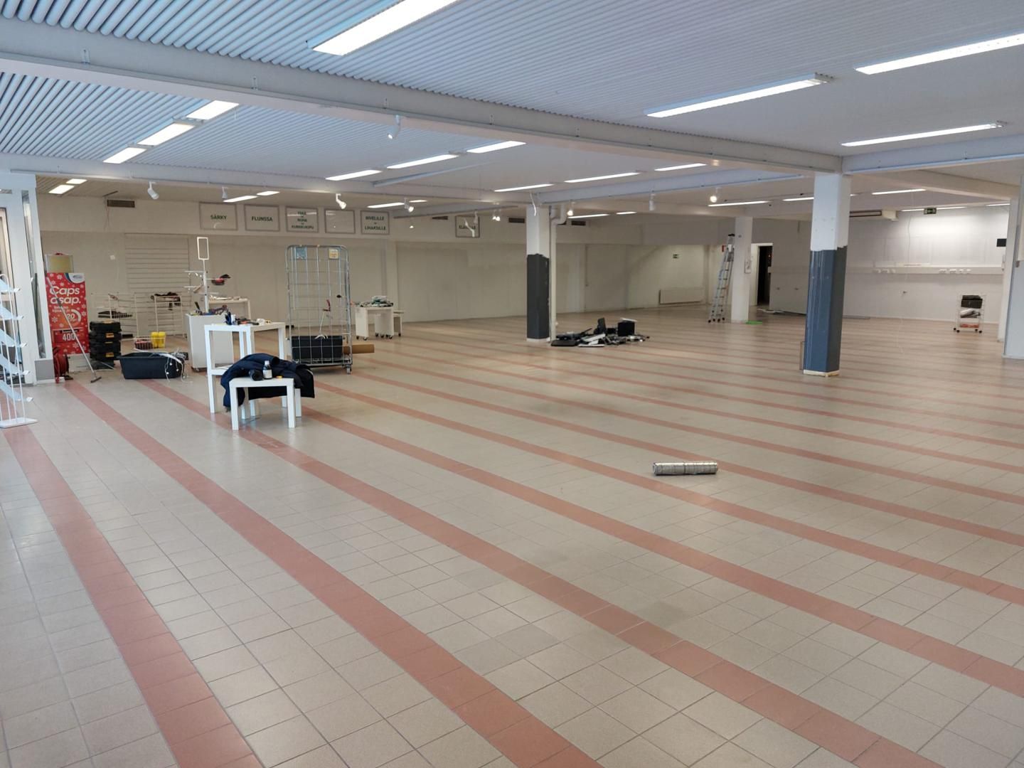 Tila koostuu lähinnä avotilasta ja sivustalla on sosiaalitilat ja pari erillistä huonetta. Myös lastauslaituriin on yhteys. Tilassa on toiminut aiemmin apteekki.