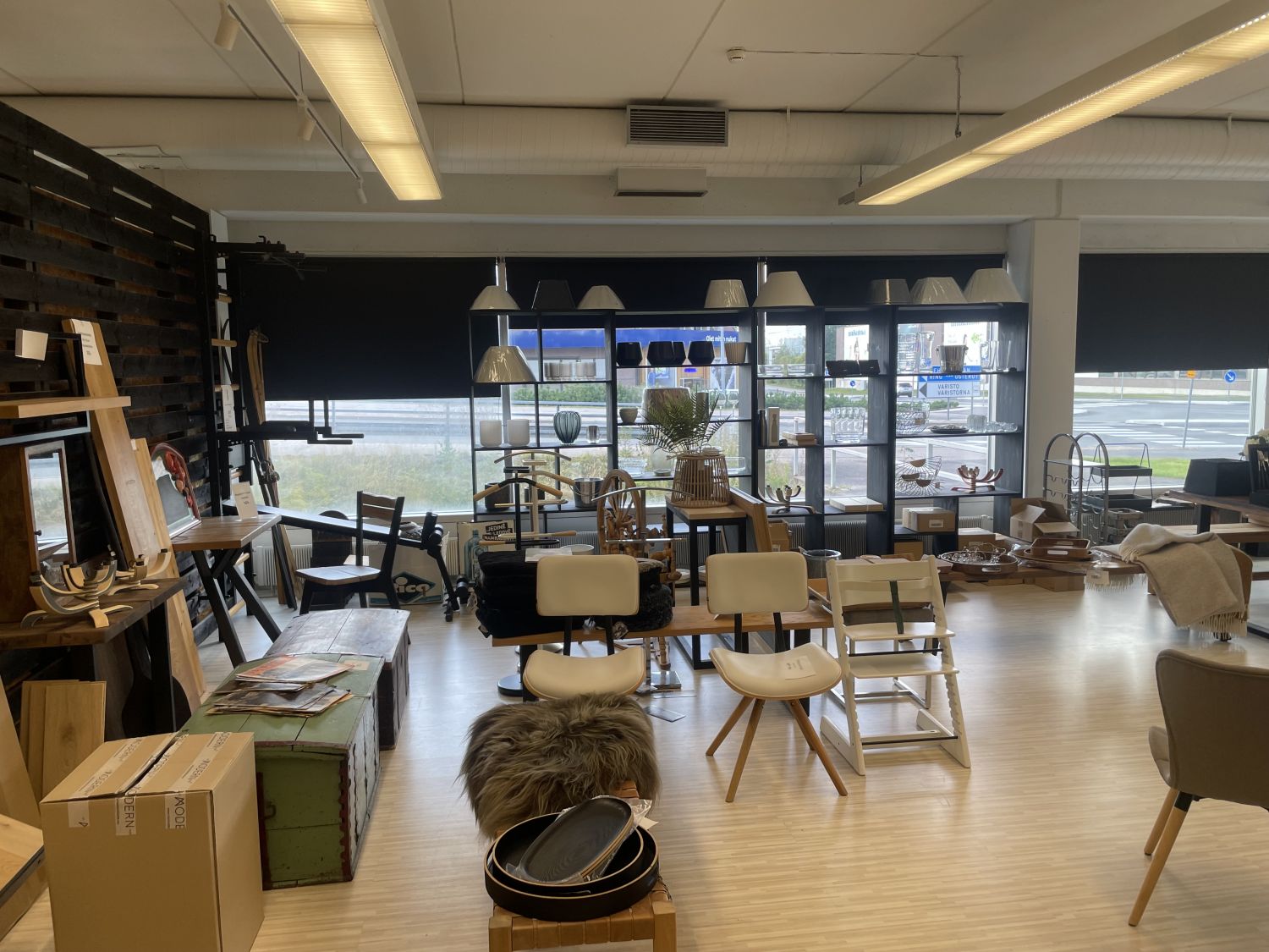 Myymälä, näyttely, työtila näkyvältä paikalta Petikossa.