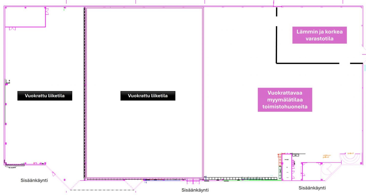 Kokonaisuutta voidaan tarvittaessa jakaa esimerkiksi n. 1000 m² tai n. 1500 m² tai kokonaan n. 2000 m².