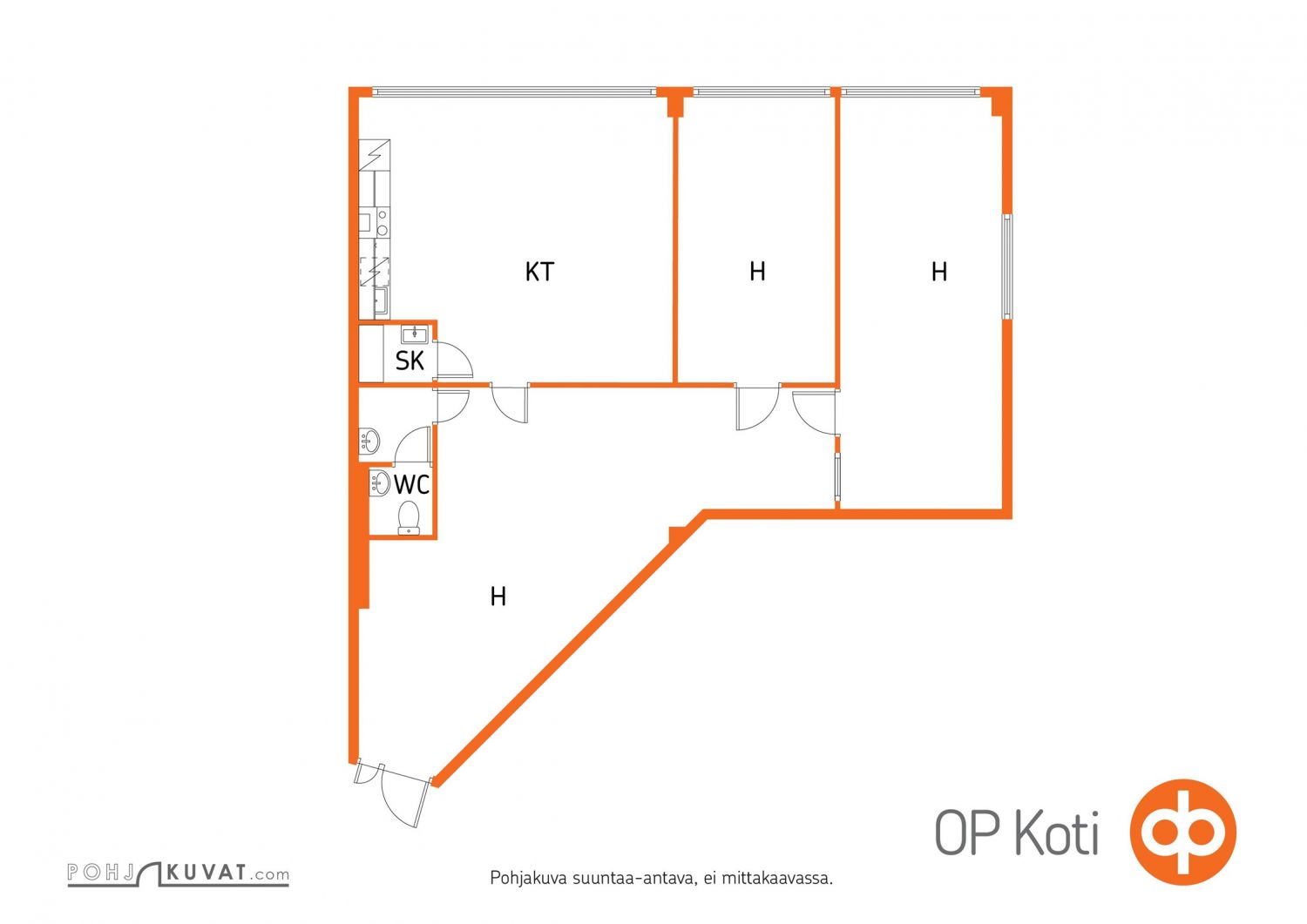Pinta-ala on isännöitsijäntodistuksen, pohjapiirustuksen ja yhtiöjärjestyksen mukainen. Vuokranantajan ilmoittama pinta-ala on 107m2.