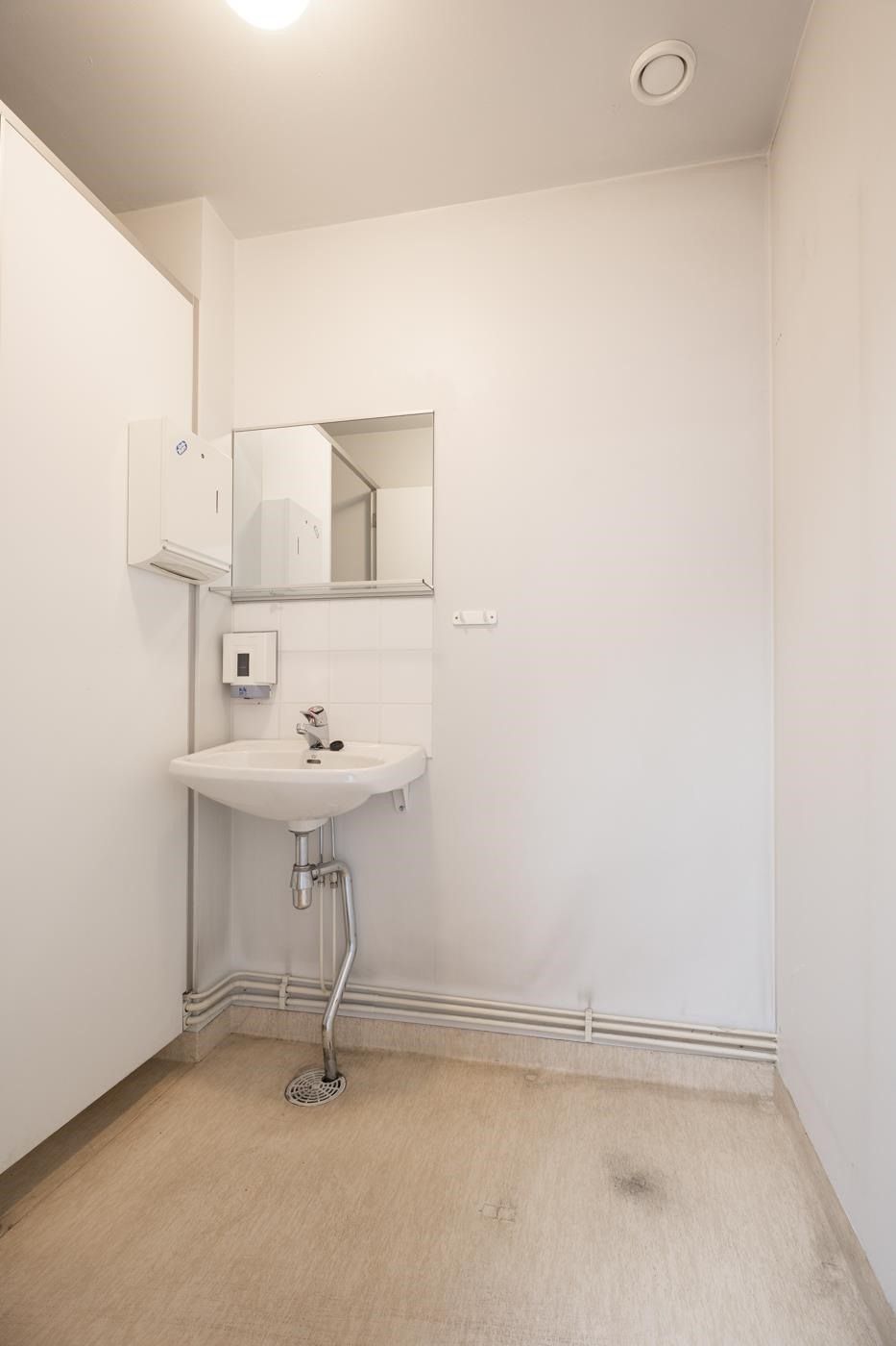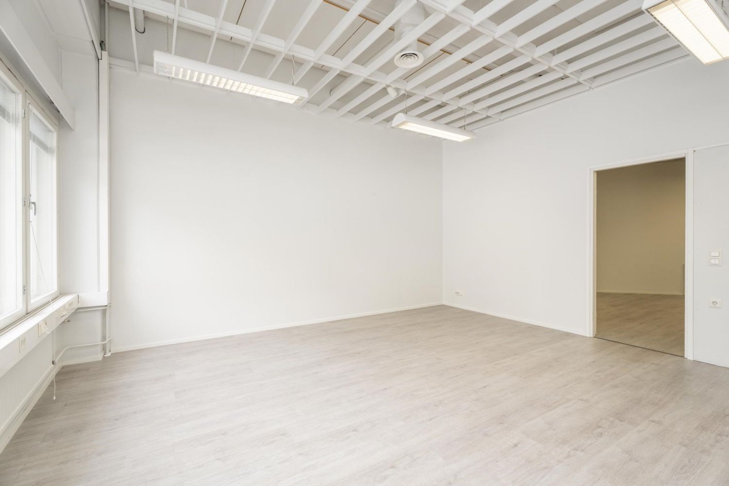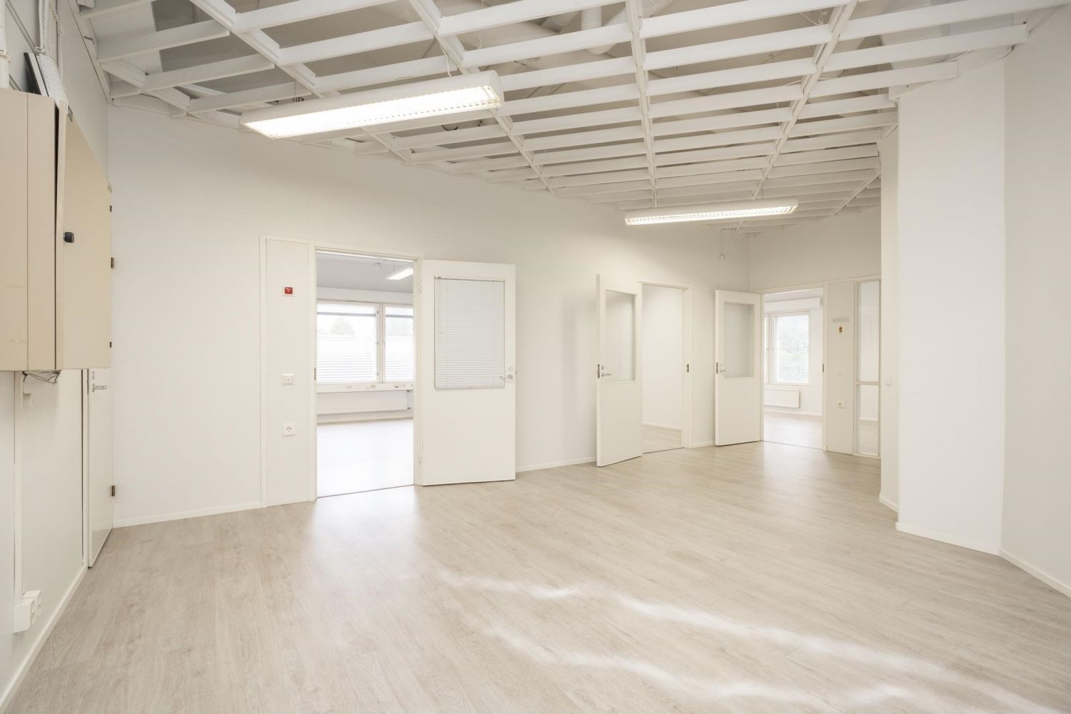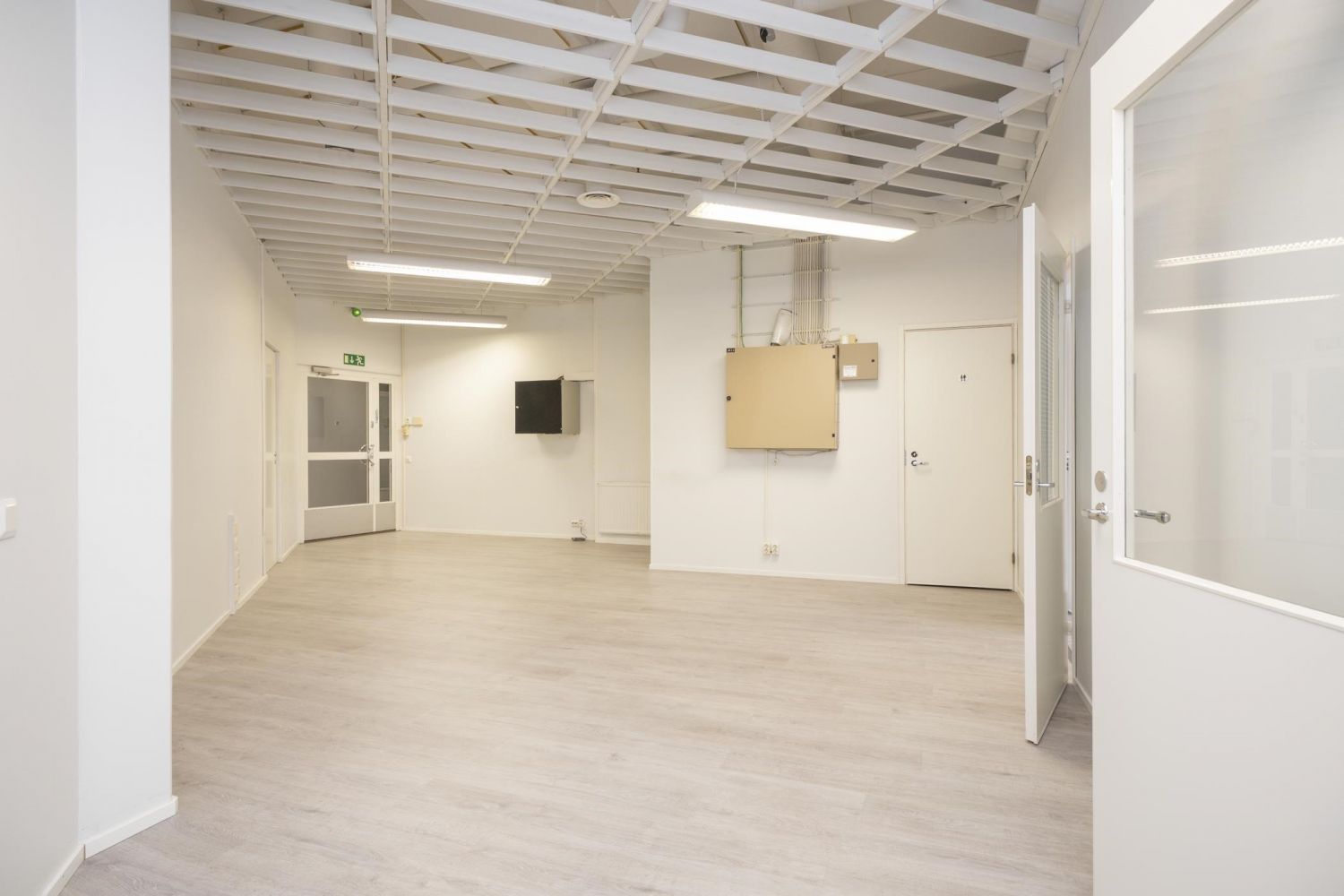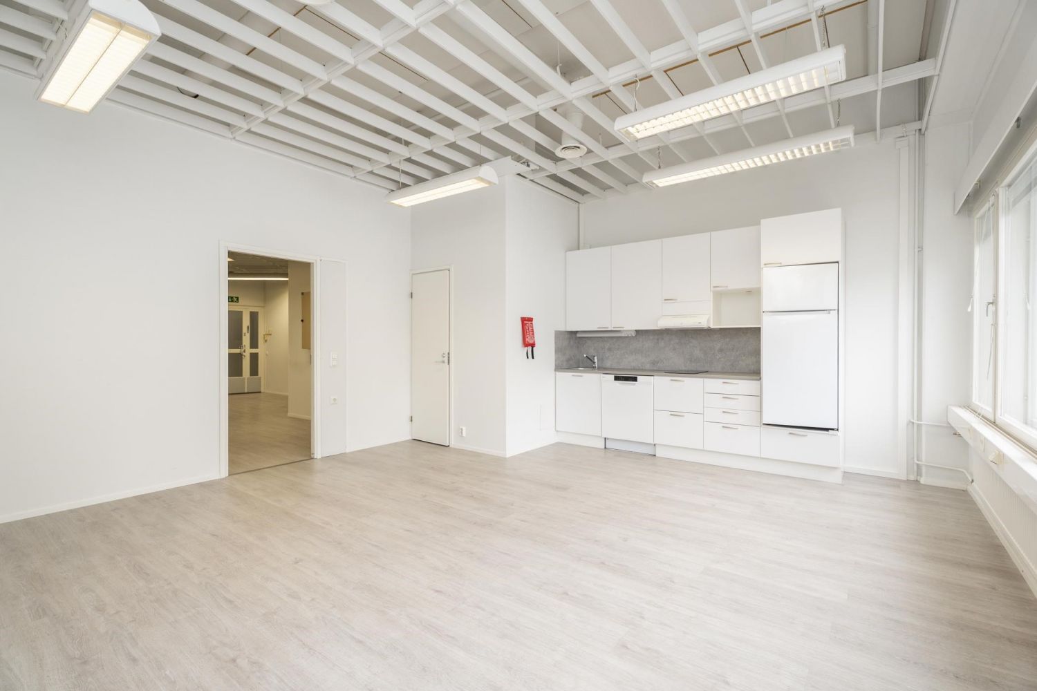 Iso aula ja kolme erillistä huonetta, yhdessä huoneessa remontoitu keittonurkka ja siivouskomero. Aulasta käynti vessaan. Tiloissa vaalea laminaattilattia ja vaaleaksi maalatut seinät, runsaasti ikkunoita, ikkunoissa sälekaihtimet.