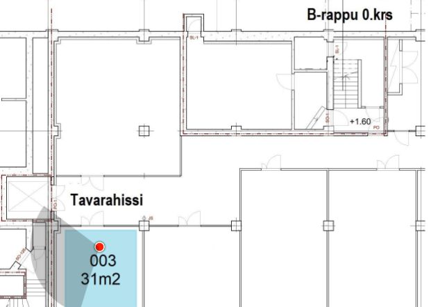 Talossa kaksi tavarahissiä, josta yhteydet jokaiseen kerrokseen ja tilaan.