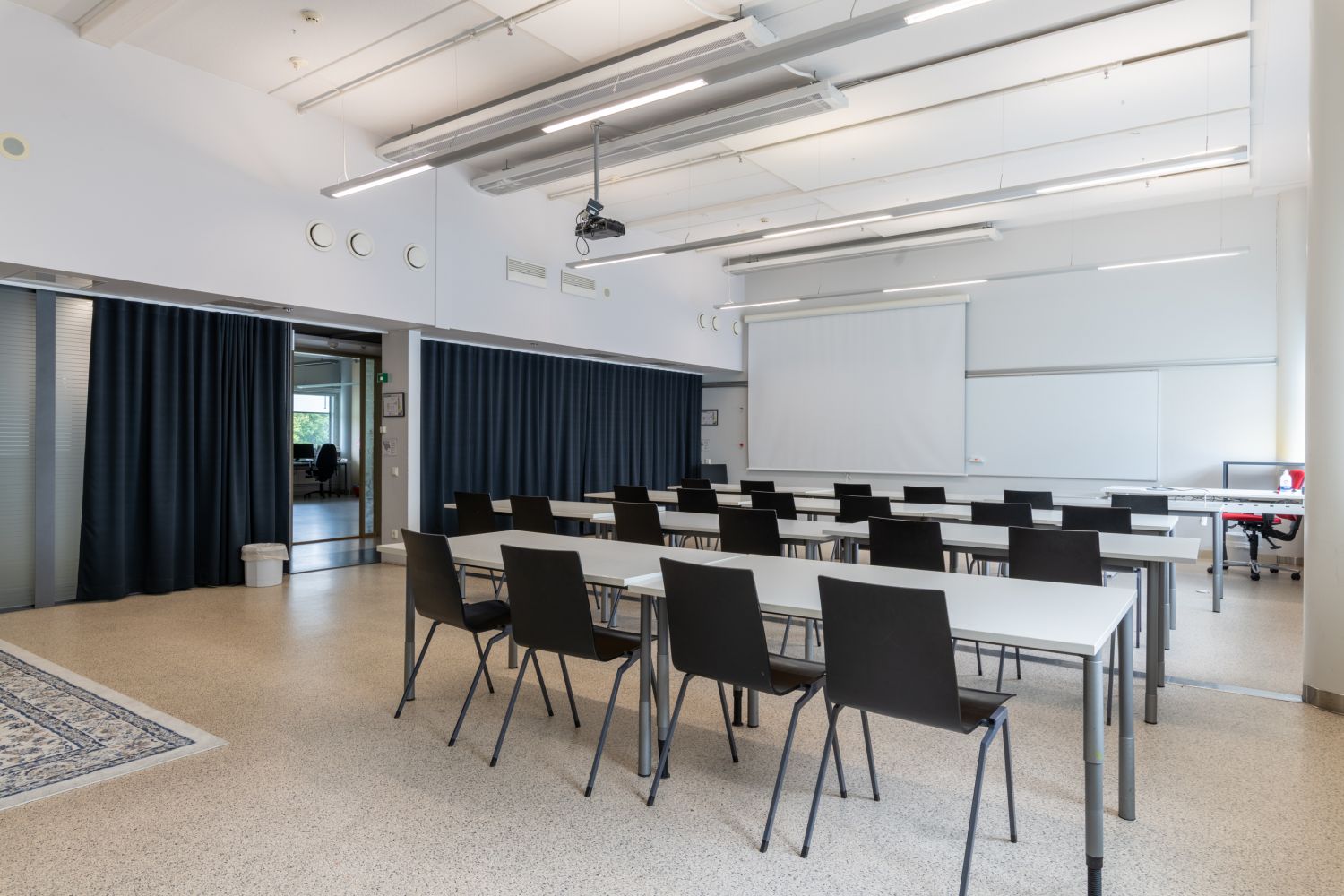 Arcadassa työnteko ja opetus kulkevat käsikädessä. Yhdessä hetkessä tila voi toimia toimistona, jossa kolme ihmistä ratkovat vaativaa ongelmaa kahvikupin ääressä. Seuraavassa hetkessä samat seinät vetävät sisäänsä kymmenen osallistujaa koulutukseen, jossa taululle piirtyy strategioita ja tavoitteita. Joustavuus ei ole täällä sana, se on rakenteisiin rakennettu. Istuinjärjestykset muuntuvat luokkamuodosta ryhmätyöpöytiin tai avoimeksi lattiapinnaksi. Kaikki mukautuu, ja tilan henki säilyy: valoisa, toimiva ja rauhallinen. Arcada tarjoaa niin toimistoja kuin koulutustiloja, joita voi myös yhdistellä. Täällä rajat eivät tule heti vastaan!