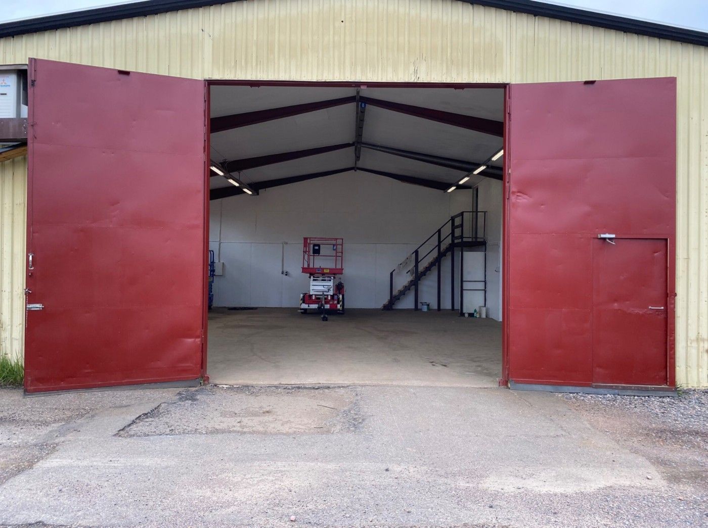 Selkeä hallitila isoilla ovilla ja helpolla sisäänajolla isoista ovista (oven korkeus 4,10 metriä ja leveys 4,05 metriä.