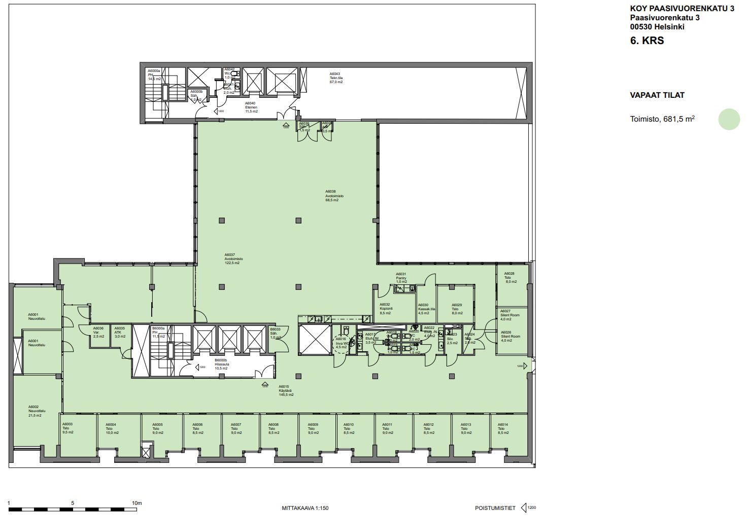Paasivuorenkadun 680 m² kokoinen toimistotila tarjoaa yritykselle toimivan ja arvokkaan ympäristön Helsingin Hakaniemen paraatipaikalla. Tilat yhdistävät avaruutta ja tehokkuutta, ja pohjaratkaisu mahdollistaa sekä tiimityöskentelyn että erillisten työhuoneiden ja neuvottelutilojen käytön. Ikkunanäkymät avautuvat kauniisti Paasivuorenpuistikkoon, mikä tuo työympäristöön valoisuutta ja viihtyisyyttä.