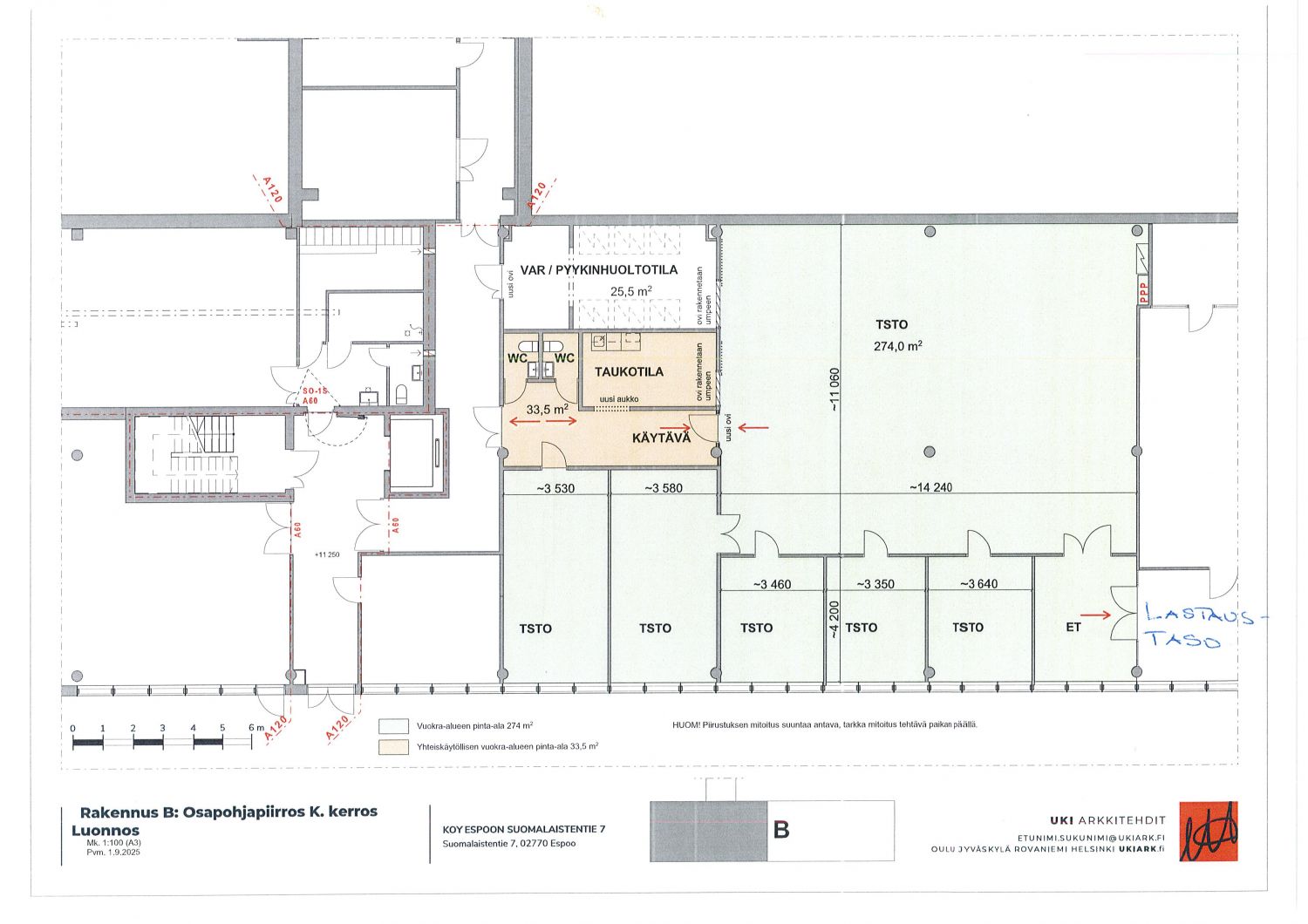 Espoon Suomalaistentie 7:ssä vuokrattavissa katutason 247 m²:n liike/varastotila. Tilaan kulkuyhteys lastaustason kautta (yhteinen viereisen vuokralaisen kanssa).