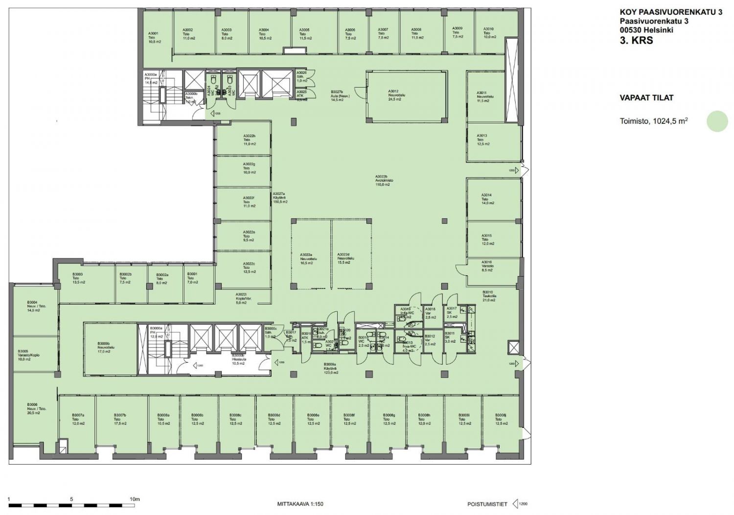 Vuokrataan Helsingin Hakaniemestä koko kolmannen kerroksen kattava 1 023 m² toimistotila.