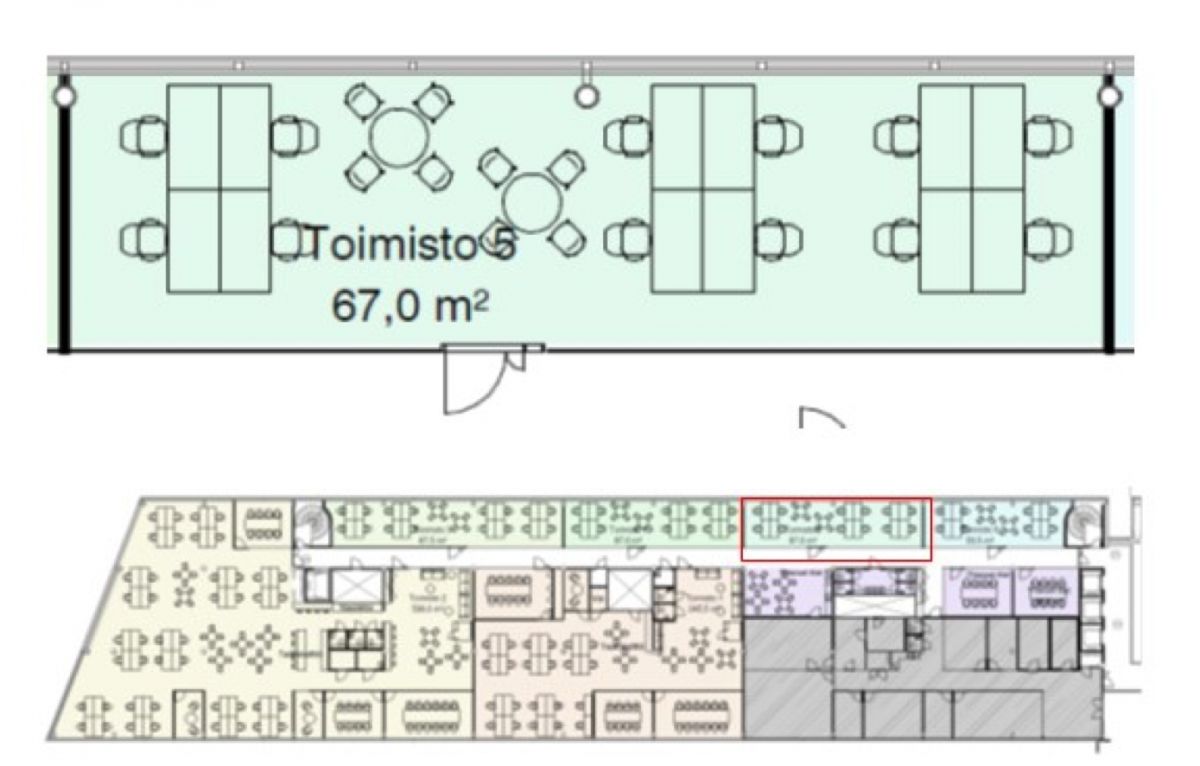 Vuokrataan 5. kerroksen toimistotila Pitäjänmäestä. Kuvat havainnekuvia kiinteistön tiloista.
