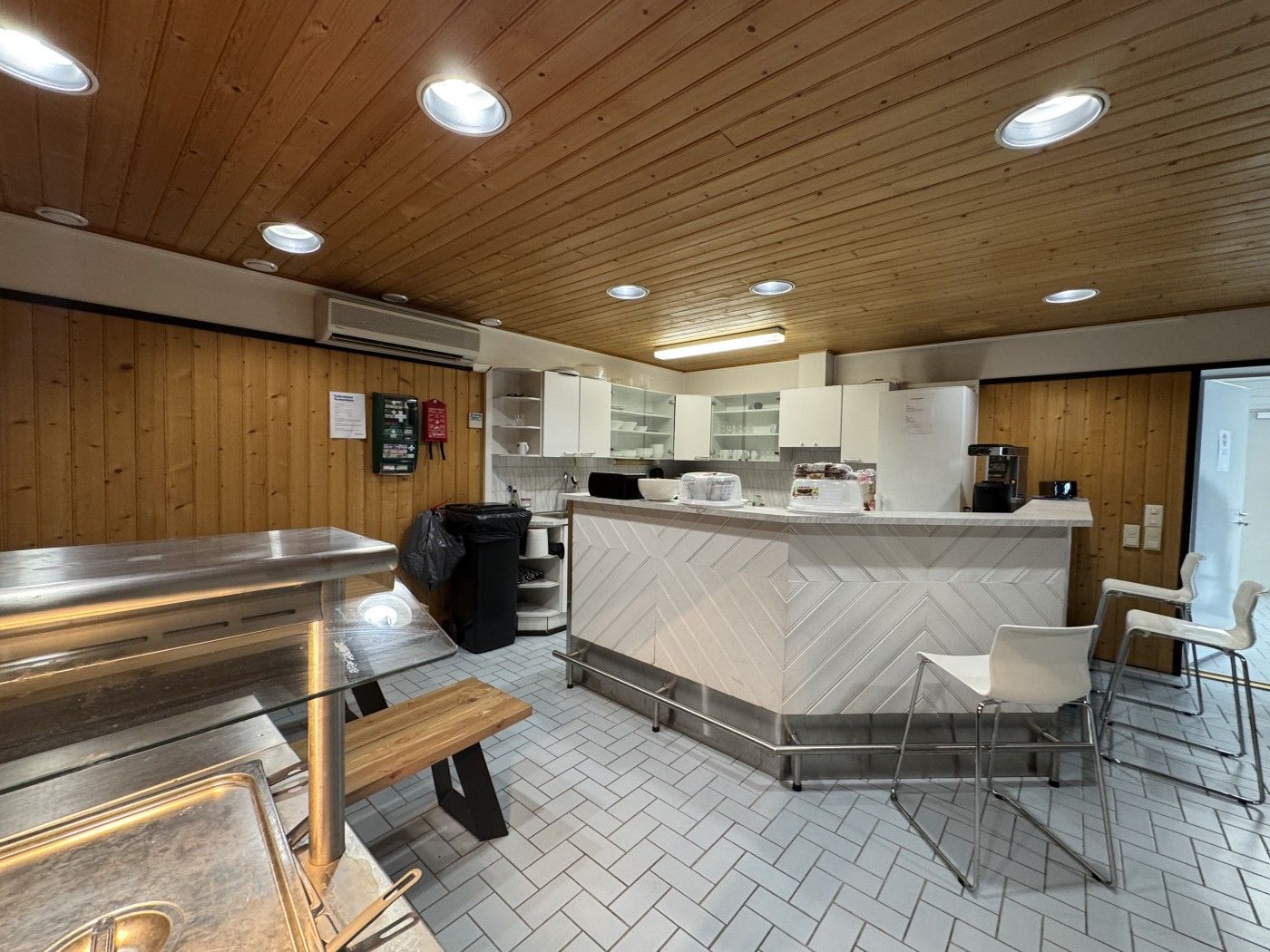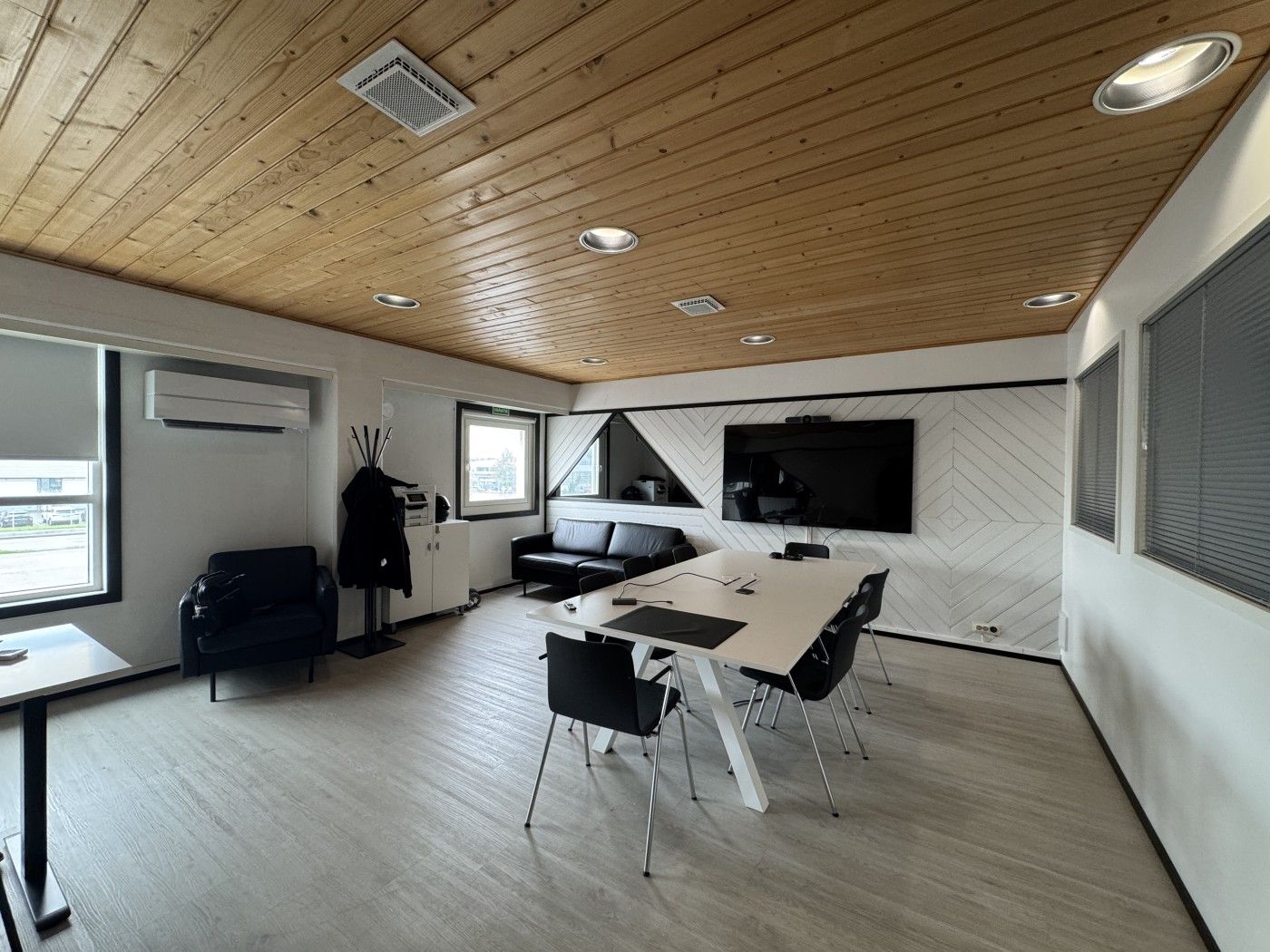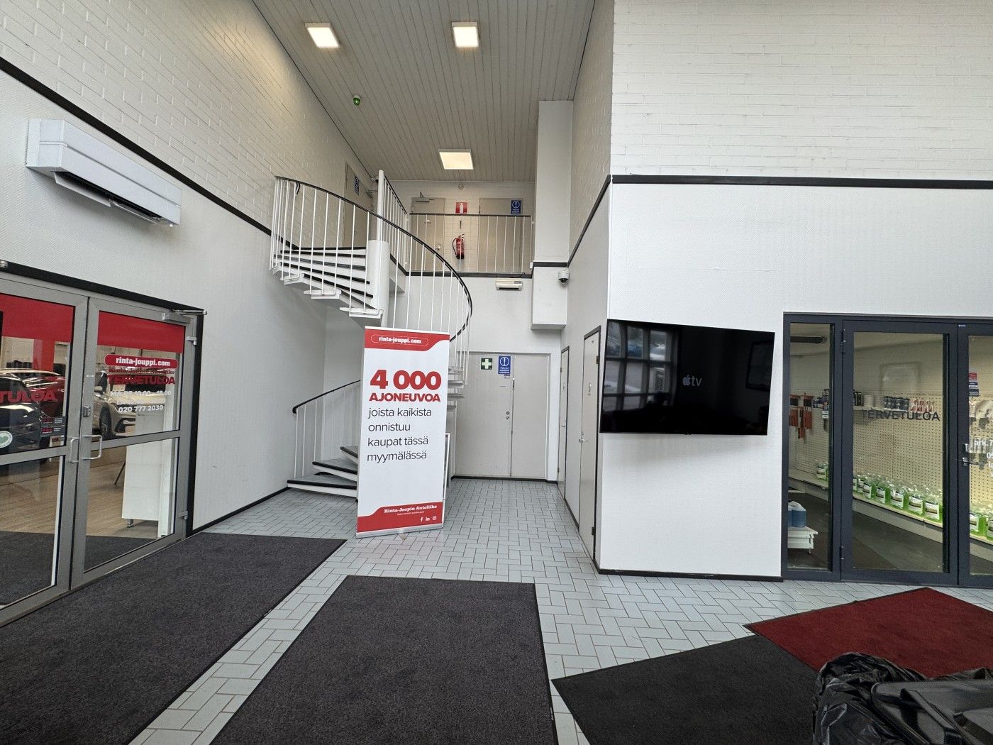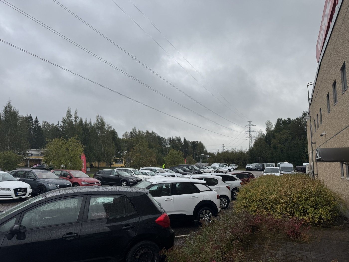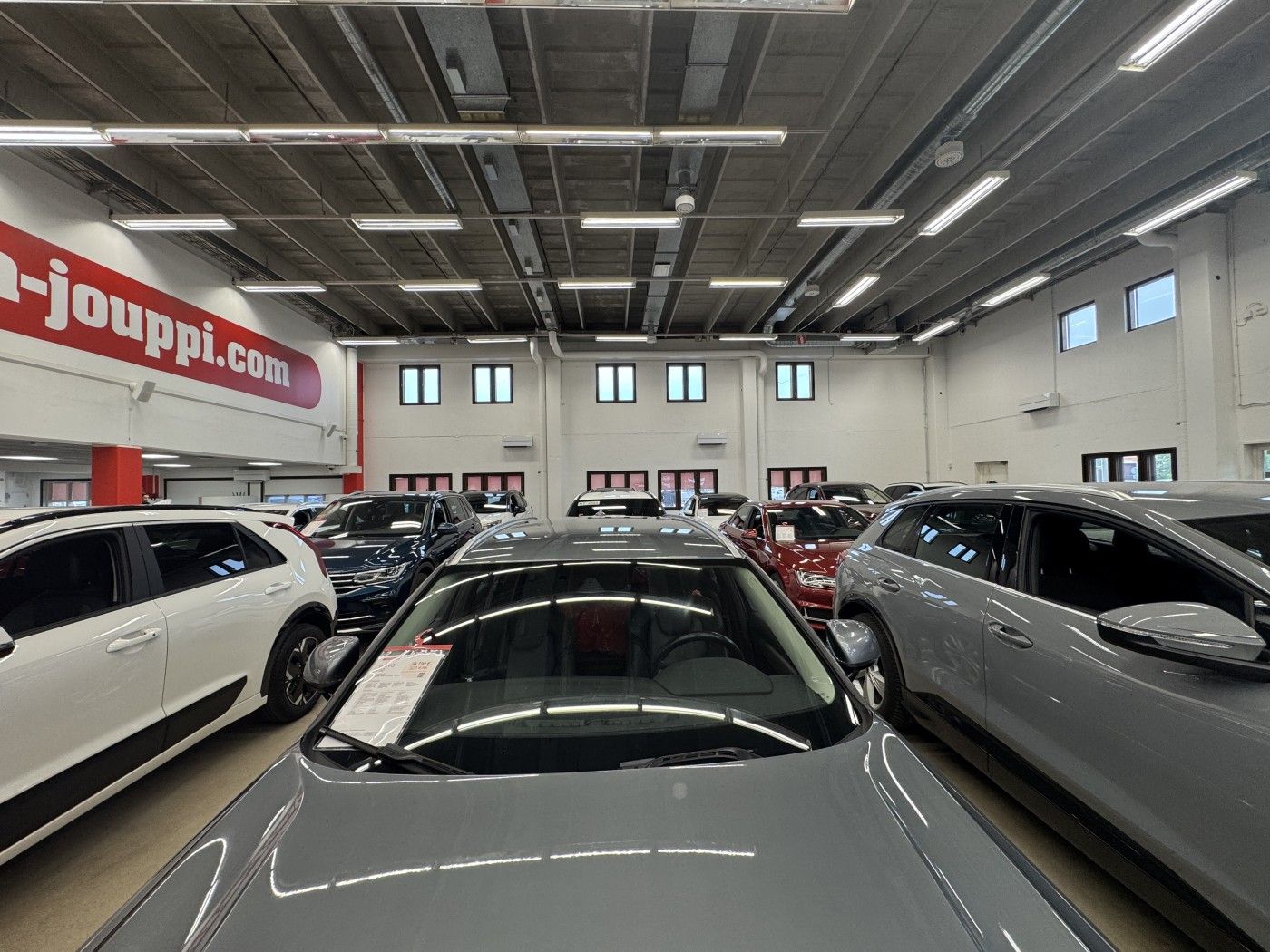 Siisti, korkea halli jolla hyvin pysäköintitilaa pihalla eri puolilla rakennusta. Tiloissa toimii autokauppa.