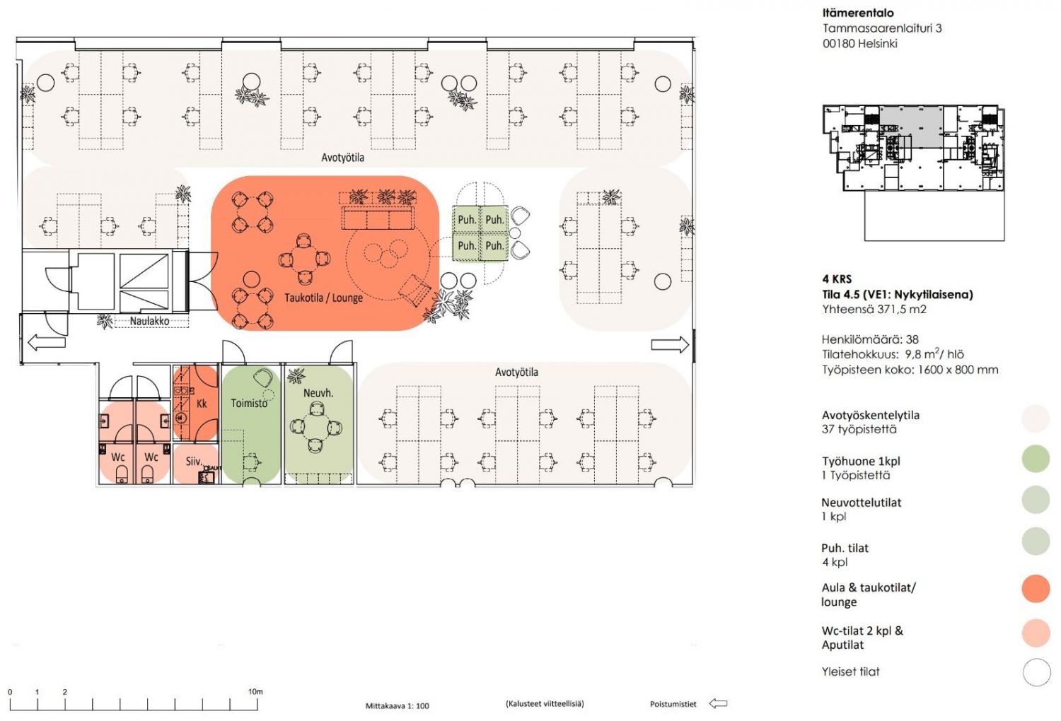 Vuokrataan Helsingin Ruoholahdesta neljännen kerroksen 371 m² toimistotila.