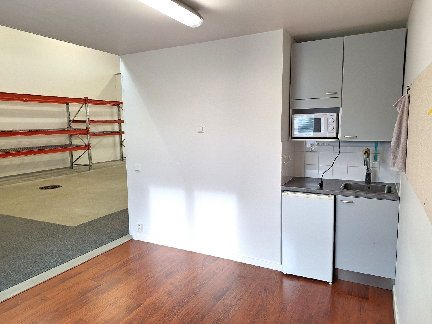 Vuokrattava tila on noin 40m2 (sis. jyvitykset), johon kuuluu iso toimistohuone yläkerrasta ja alakerrasta varastotilaa (koko parven alapuolella oleva alue). Alakerran keittiö- ja sosiaalitilat ovat vuokralaisen käytettävissä. Pihalla on mahdollisuus autopaikoille.