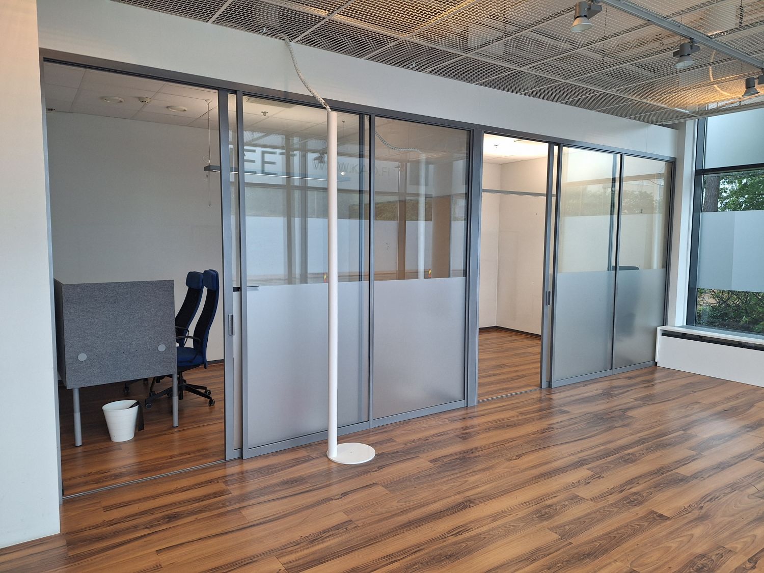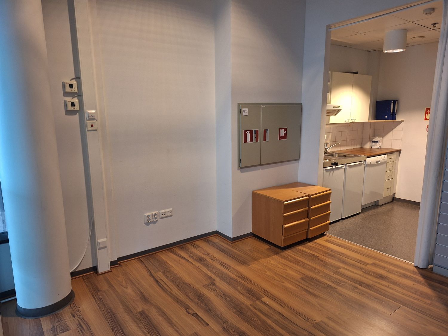 Avotila, 2x työhuone, mini-kk, wc, käyntiovi.