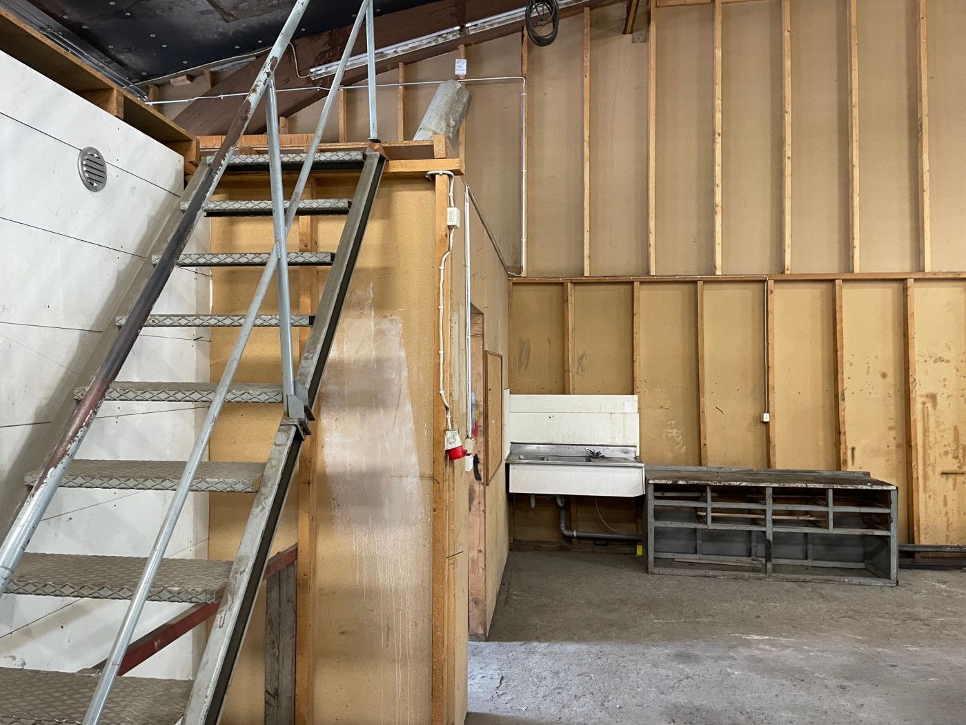 Tilassa pieni toimisto huone, hallissa vesipiste mutta ei keittiö- tai wc-tilat.