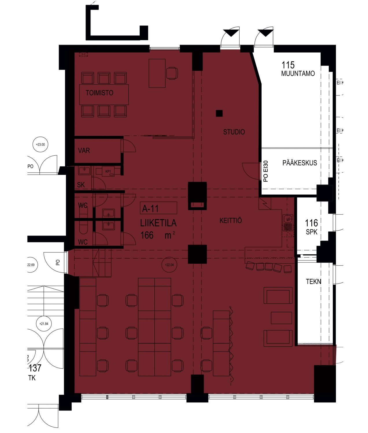 Siisti ensimmäisen kerroksen 166 m² toimisto Vallilassa