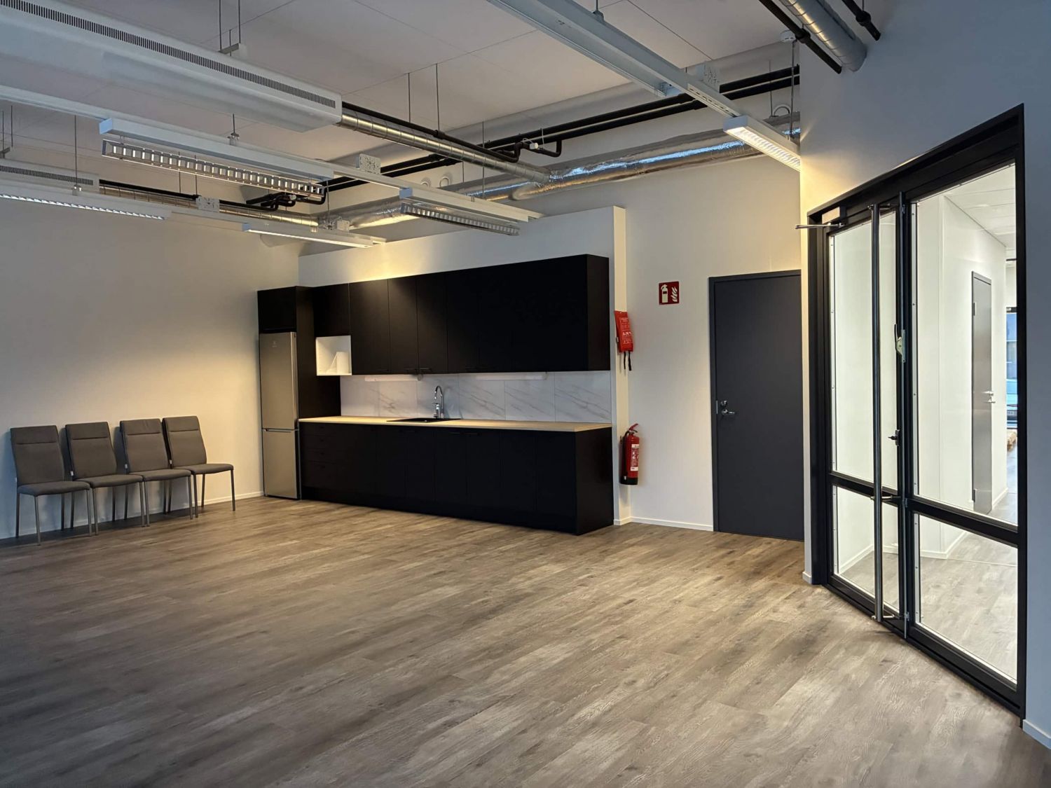 Neuvottelutila ja sosiaalitilat sekä keittiö yhteiskäytössä muutaman muun toimistokäyttäjän kanssa.