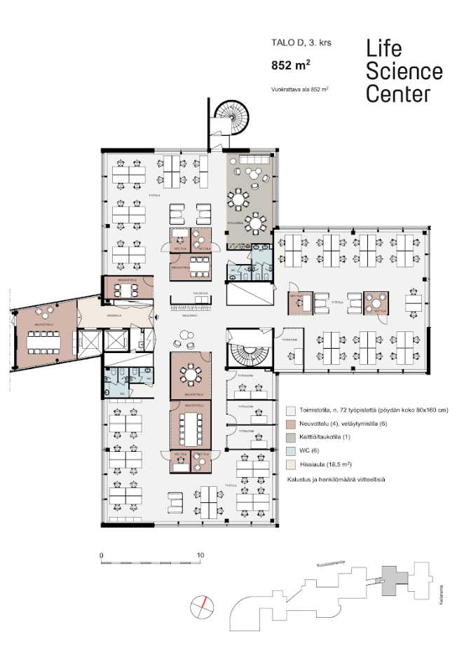 Huippumoderni uudisrakennus LIFE SCIENCE CENTER Business Park tarjoaa nykyaikaiset puitteet miellyttävälle työskentelylle Espoon keilarannassa. Alkuvuodesta 2023 valmistunut 7-kerroksinen n. 8000 m²:n laajennusosa mahdollistaa uusien high-tech yritysten sijoittumista Suomen merkittävimpään biotiede- ja teknologiakeskittymään. Kerroskoko on n. 1200 m² ja kerrokset voidaan jakaa jopa neljään osaan. Tilat edustavat tämän päivän edistyksellisintä ja monipuolisinta Business Park tarjontaa ja käyttäjän tarpeiden mukaan muunneltavaa toimistotilaa on tarjolla rakennuksen 2.-6. kerroksissa. Ylempien kerrosten toimistoista aukeaa upeat 360 asteen näkymät ja tästä saadaan isommallekin käyttäjälle yhdistettyä useampi kerros tarpeen mukaan.