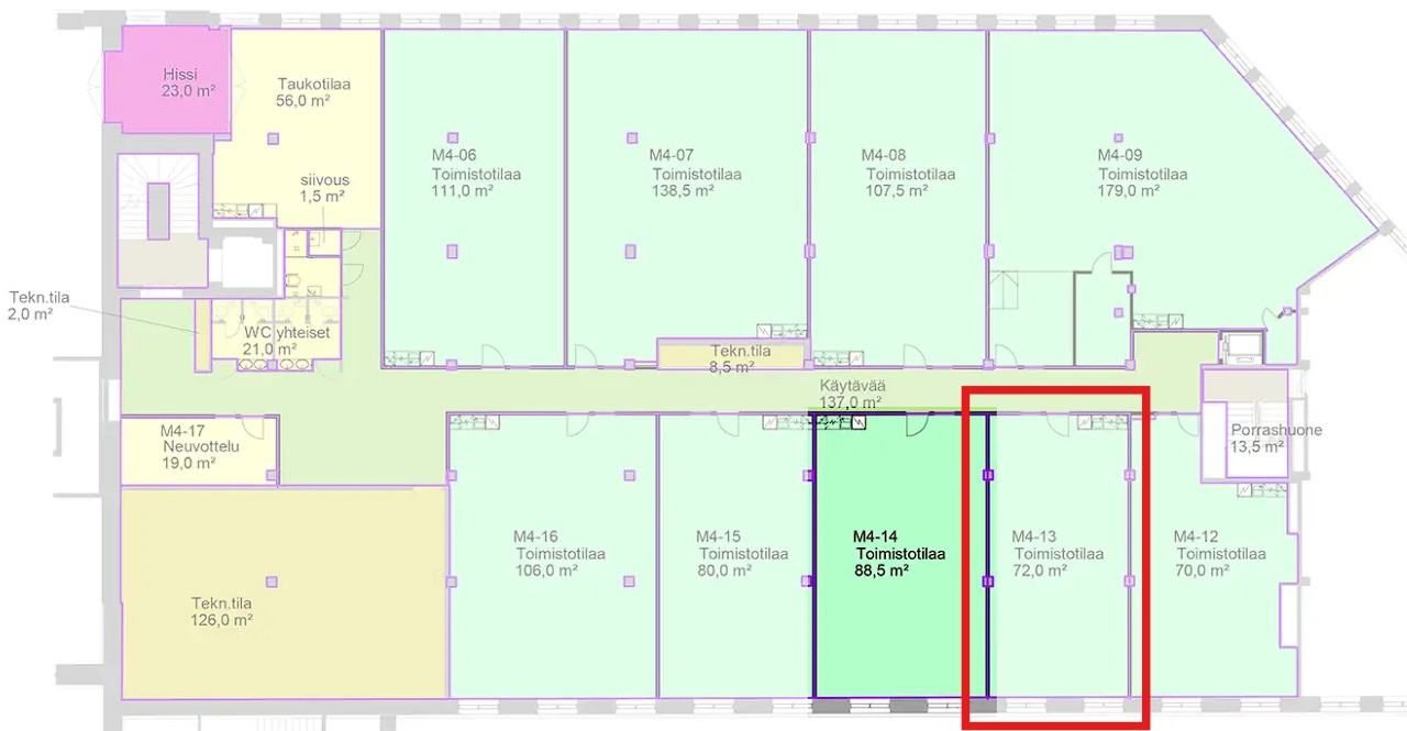 Vuokrataan Tampereen keskustasta Finlaysonin alueelta neljännen kerroksen 72 m² toimistotila.