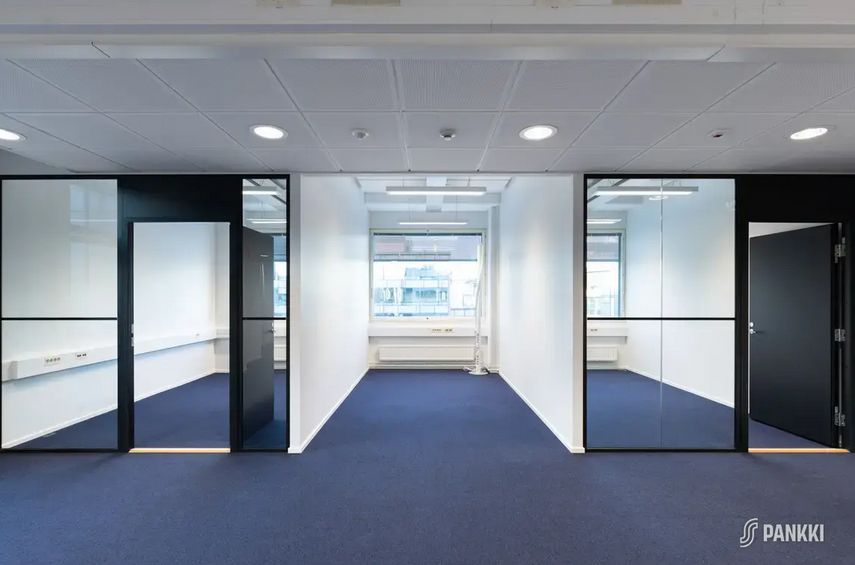 - Valoisa toimisto koostuu avotilasta ja kahdesta työhuoneesta.