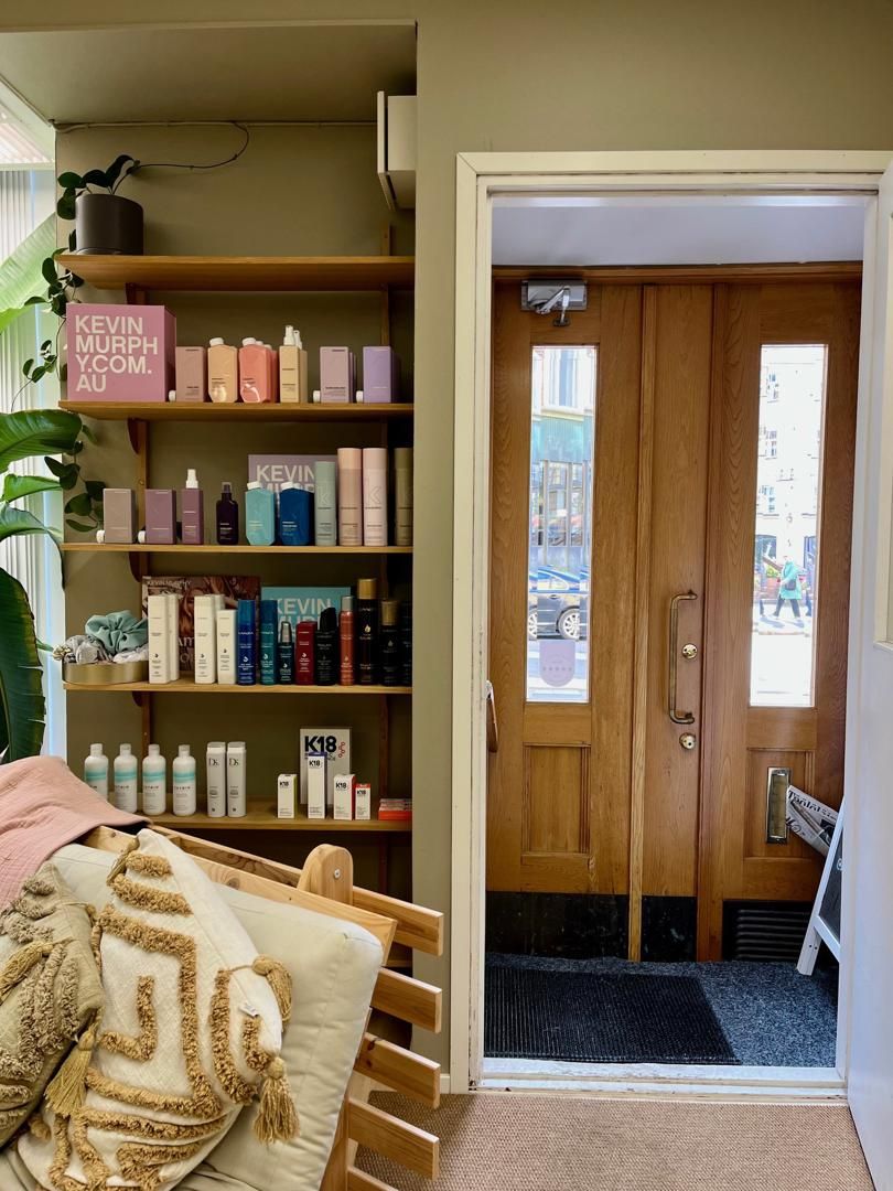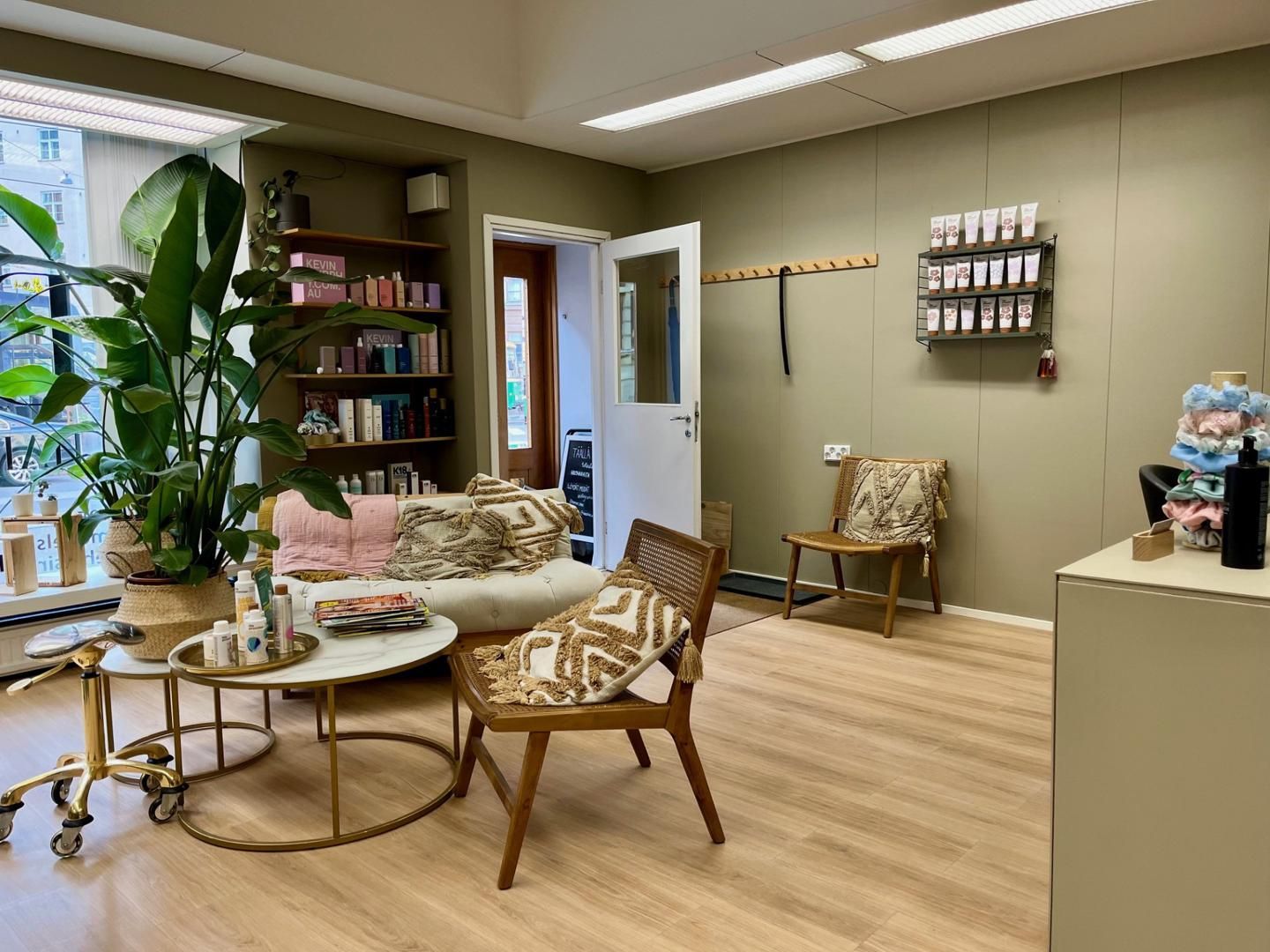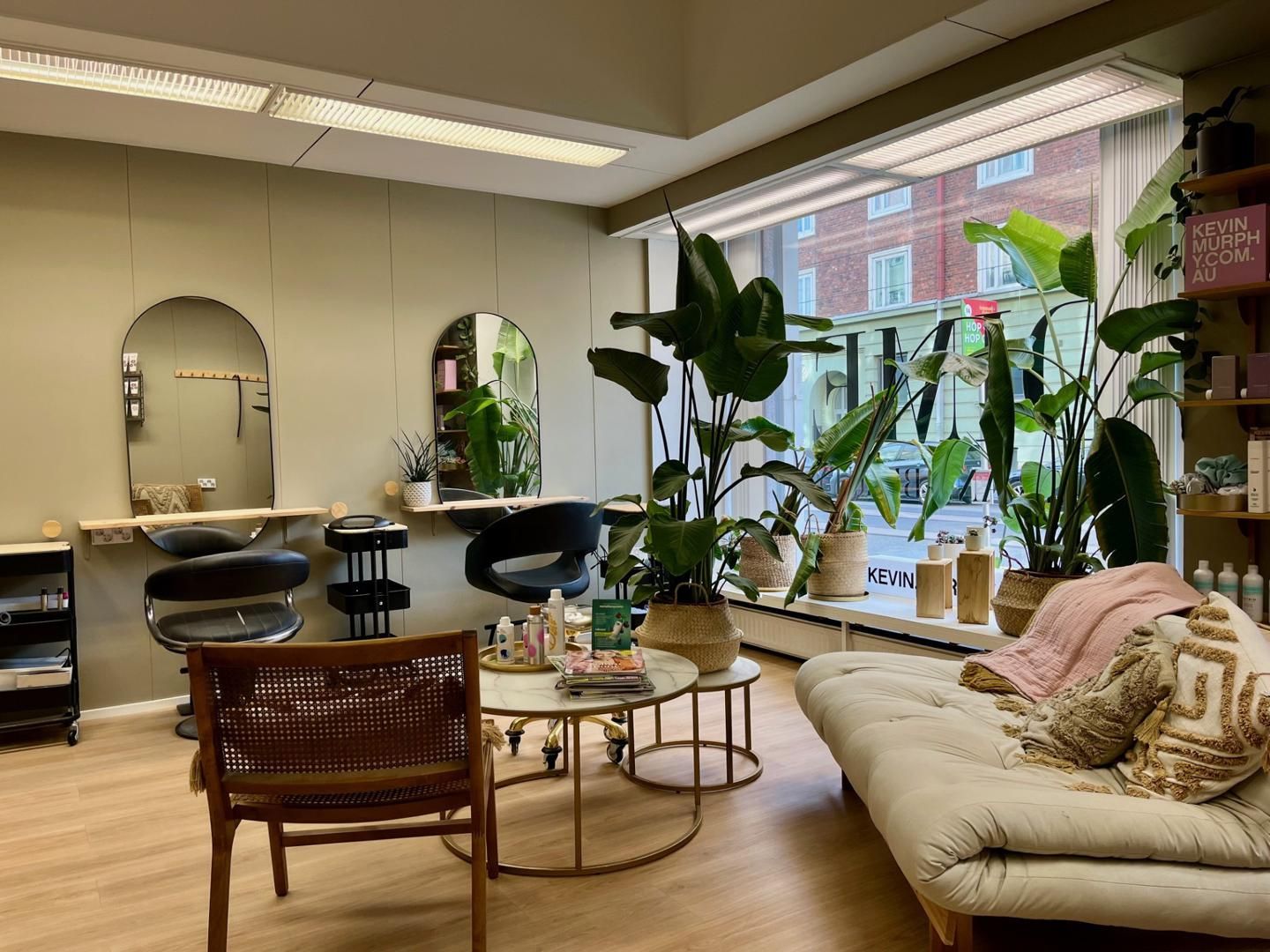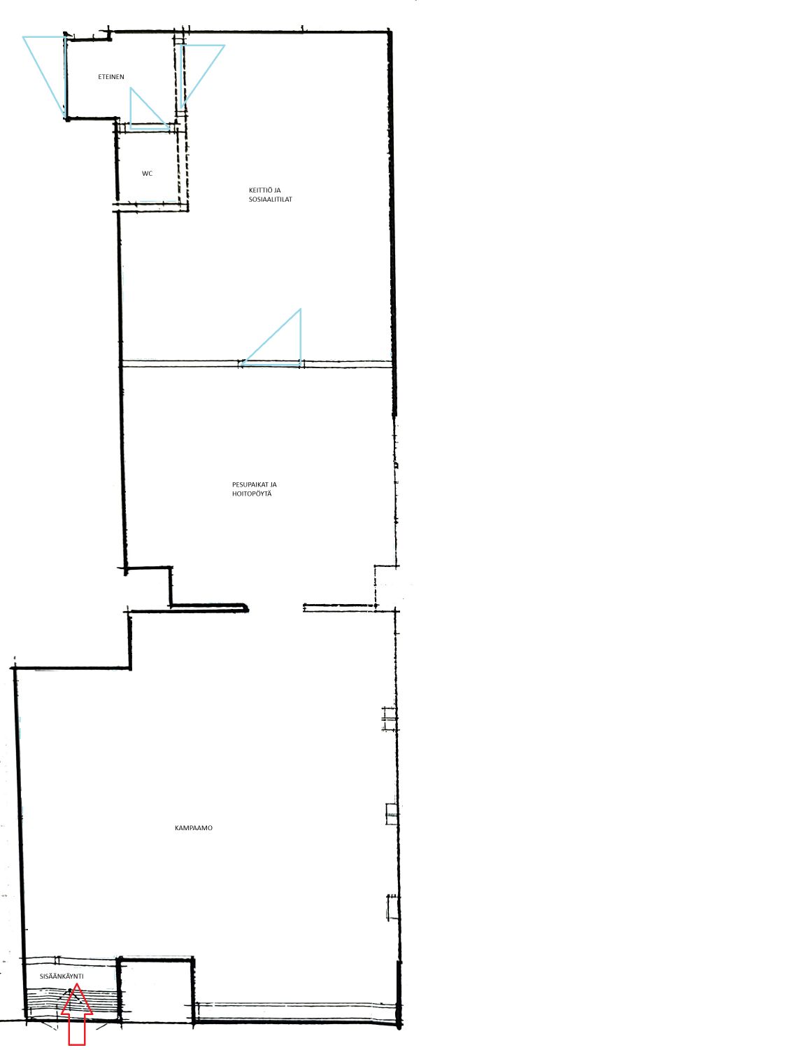 Tilan etuosassa sijaitsee valoisa kampaamotila, jossa suuri näyteikkuna avautuu vilkkaalle kadulle. Tilassa on vastaanottotiski, mukavasti odotustilaa sekä 3–4 asiakaspaikkaa. Seuraavassa huoneessa on kaksi pesupaikkaa, ja tähän huoneeseen mahtuu myös hoitopöytä sekä pesukoneet.