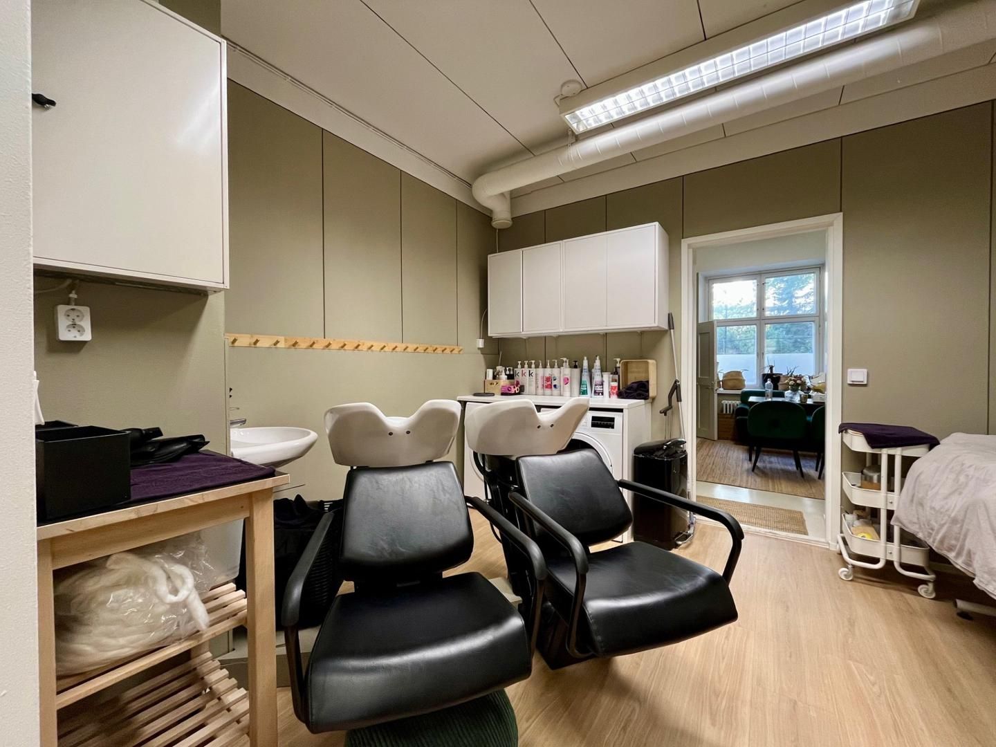 Koko tila on remontoitu kauniin sävyin: kokonaisuus on siisti, viihtyisä ja valmis vastaanottamaan uudet asiakkaat. Kalusteista on mahdollista neuvotella erikseen, mikäli haluat aloittaa toimintasi nopeasti ja vaivattomasti.
