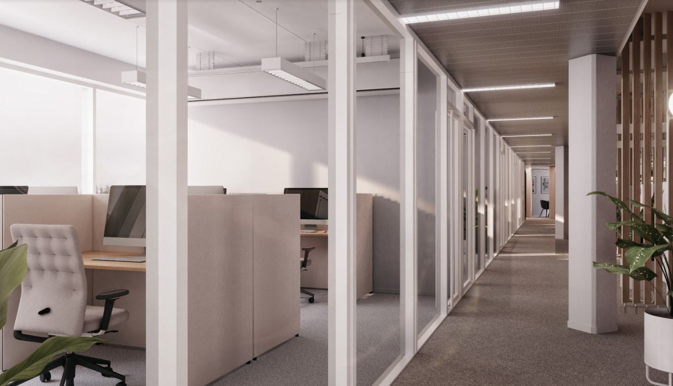 Vuokrataan 1. kerroksen toimistotila, jossa korkea huonekorkeus n.3,5 m. Ohessa havainnollistavia kuvia tilaratkaisuista kiinteistössä.