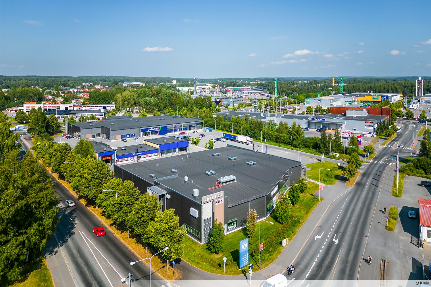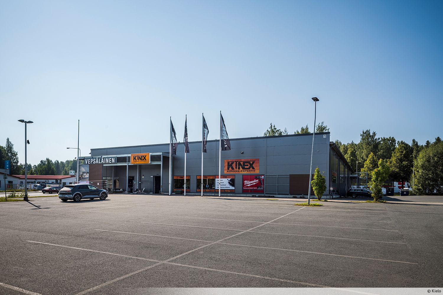 Laaja pysäköintialue mahdollistaa sujuvan asioimisen.