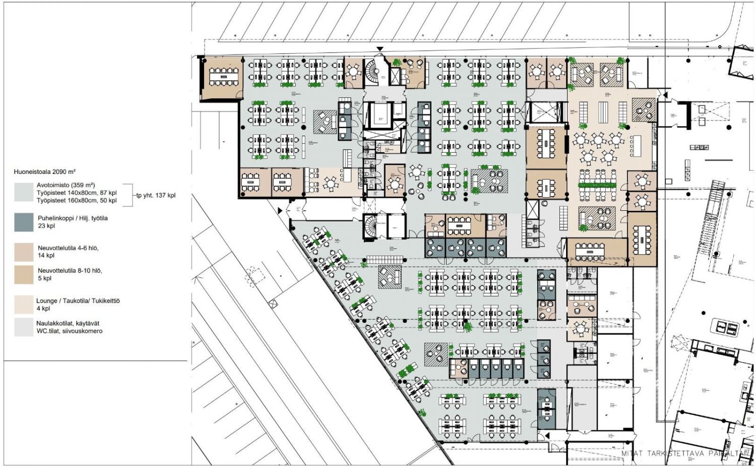 Tilan huonekorkeus on poikkeuksellisen korkea n. 3,5 m ja ovat muuttovalmiissa kunnossa. Tilan erikoisuutena näyttävä oma lounge-alue.